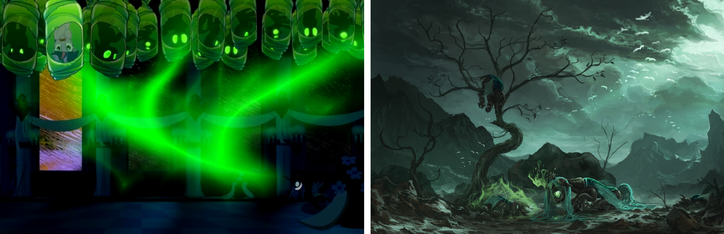 As previously stated, the rest of fan canon is about exploring individual aspects about Chrysalis and the Changeling society.  It’s interesting how much fans have glommed onto her enough to create such interesting content out there, both painting her in sympathetic lights, and exploring the darker aspects of Changelings.