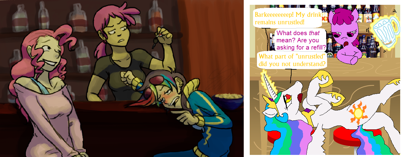 Cheerilee and Berry Punch. Wouldn’t these two be perfect for a 90’s style sitcom? The earnest sister with a frustrating job and the snarky sister with a drinking problem. WACKEYNESS ENSUES!! All kidding aside, there’s something about these two that makes them very endearing despite how little we know about Cheerilee from canon, and how one dimensional the portrayal of Berry Punch has been in fan made content.