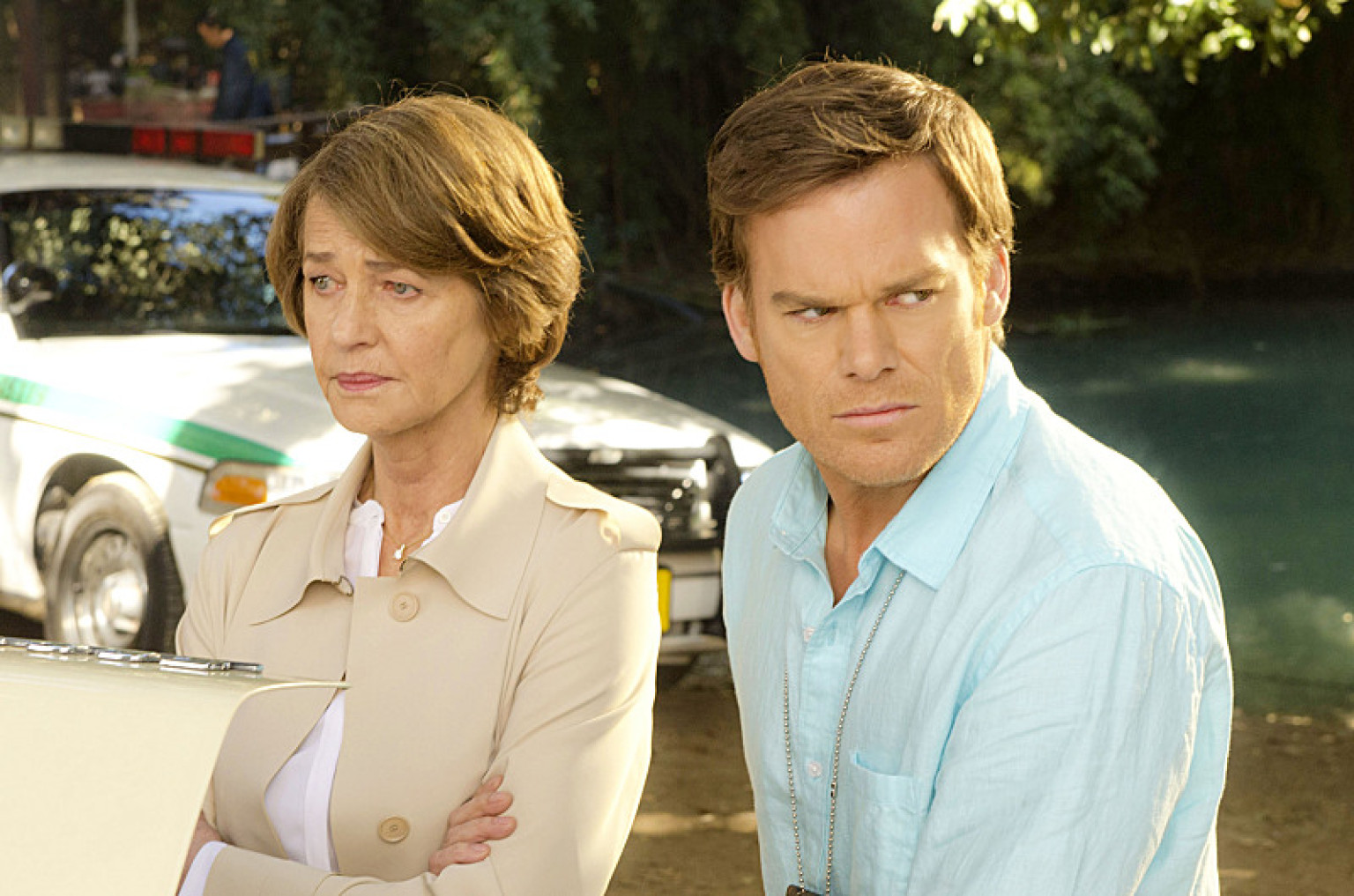 So where does the final episode start? Dexter and his son along with his girlfriend (Hannah McKay, a wanted killer) are about to flee to Argentina to start a new life where Hannah can actually go out in public. However, he’s probably not going to leave just yet because Debra (Dexter’s Sister who found out he was a killer at the end of season 6 and is also a cop) was shot by this season’s big bad guy (Daniel Vogel, the son of Charlotte Rampling’s character). Daniel was caught by Dexter in the previous episode, but instead of killing him like he normally does; he decides to let the police handle this, which of course goes horribly awry. Hey, it’s the final episode, so don’t expect to understand this if you haven’t actually seen it.