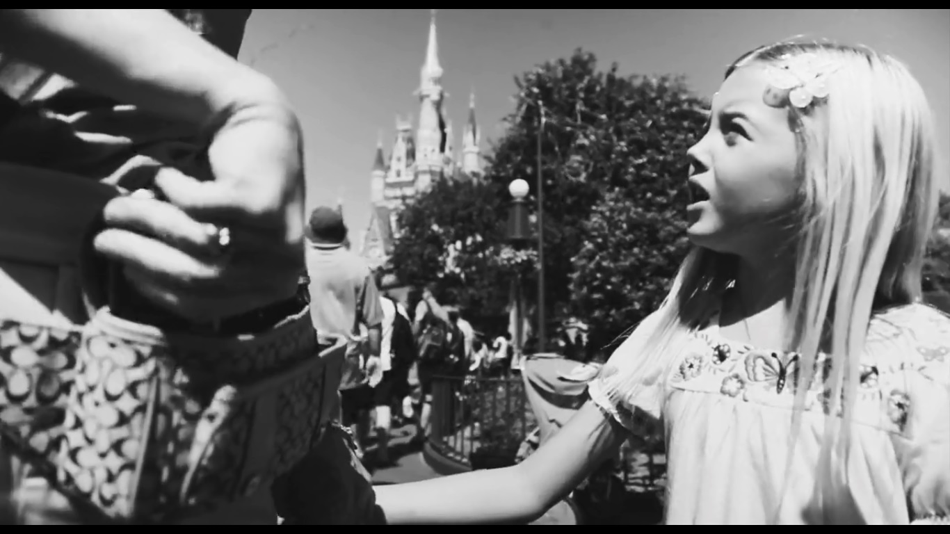 Next we see a montage of candid, idyllic footage of Disney World with beautiful music and credits being inter-cut. This is presumably to convey the atmosphere that Disney World is supposed to provide so that when the movie goes off the rails, we can see just how depraved we’ve gotten from where we started. This footage goes on for about a minute or two before it ends with someone getting their fucking head chopped off and the title popping up.