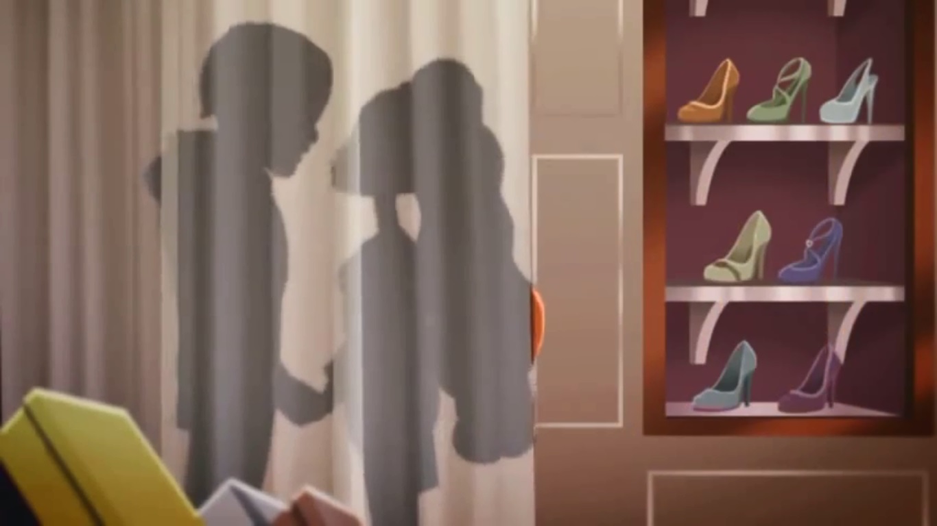 The next short is called “The Shoe Must Go On” (ugh… Queen songs are too good to deserve puns that bad). It starts with Hunter Huntsman (take a guess) who’s bringing his girlfriend Ashlynn a shipment of shoes. It seems odd that an employee of a shoe store has to get her boyfriend to deliver the merchandise, but whatever. As soon as he drops them off, he’s rushed out the door because her friends Briar and Blondie are coming over to help her set up the store, and the couple can’t be seen together. It’s not explicitly said, but I’m guessing it has to do with Hunter being a Rebel and Ashlyn being a Royal.
