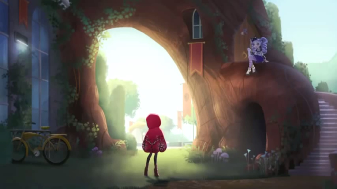 The next short is called “The Cat Who Cried Wolf” and starts with Cerise Hood racing a wolf in the woods. For some reason, the backgrounds remind me of Odin Sphere, which brings me immense amounts of joy. It’s clear that she’s part wolf (she wears the hood to cover her ears) and heads back to school, but Kitty Cheshire saw what she’s been hiding. Kitty (revealing herself to be a chaotic evil) taunts Cerise before disappearing, and then Cerise is approached by Raven. Cerise confides in Raven her secret (Daddy was the big bad wolf) and expresses her concerns about Kitty. Now THIS is an interesting character. We can tell that being half wolf gives her superhuman athletic skills, yet the embarrassing back story keeps her from truly being herself. It’s a character that is easily identifiable. A lot of kids have reasons to try and not stand out, and having a character to reflect that anxiety is a definite plus for this show. Plus, I think her design is pretty cool.