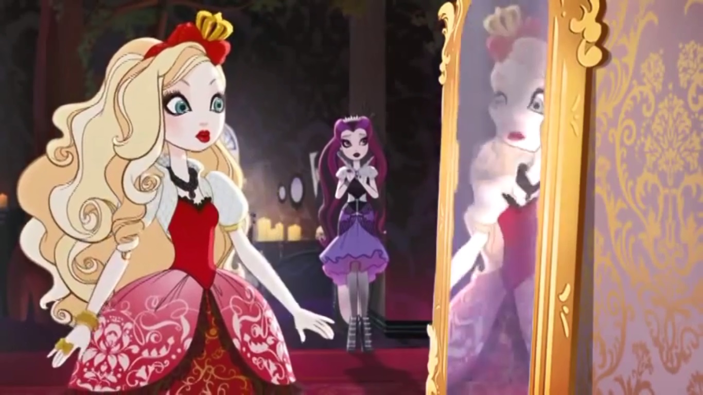 The next short is called “True Reflections”, and it starts with Apple singing in front of a mirror which annoys the hell out of Raven (they’re still roomies). Apparently this is a magic mirror which reinforces Apples self-esteem by telling her that she looks good. While Apple goes out to get some jewelry from Briar, Raven accidentally puts a spell in the mirror that makes it act most rude. Apple comes back with the new jewelry and asks the mirror what it thinks, which ends about as well as you’d expect.