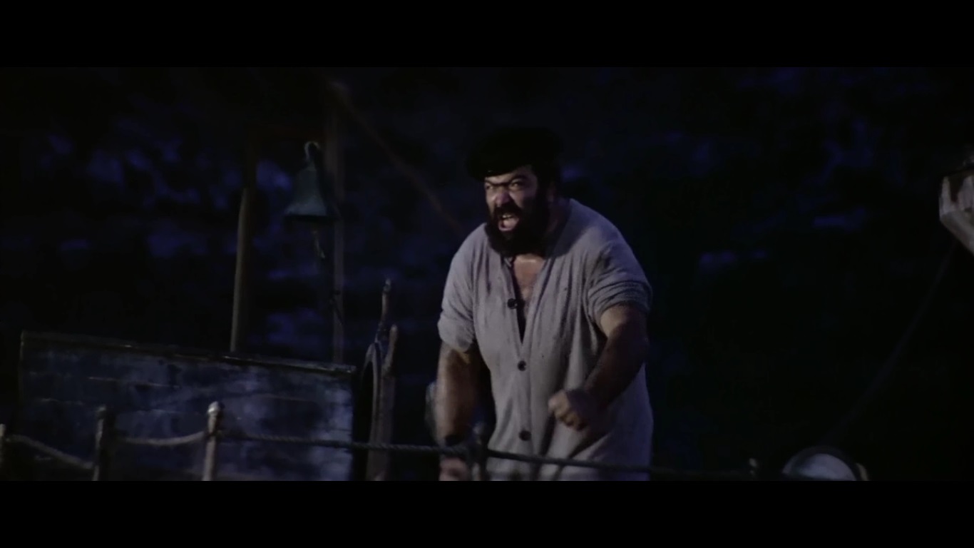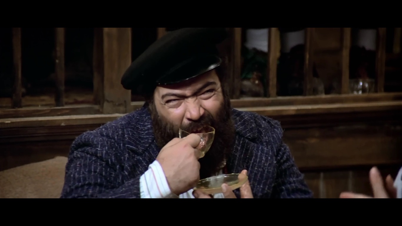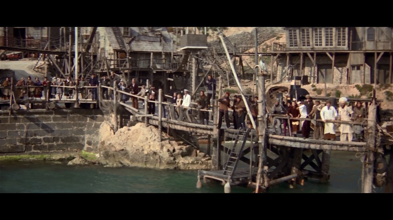The way Ms. Duvall plays Olive in this movie is nothing short of amazing. She’s prideful and quick witted, while still being a klutz and completely willing to throw herself into the slapstick and physical humor. After giving Popeye a frosty greeting, she shows him to the room where she proceeds to trip over nothing and completely wreck the room in the process. Later that night, the family has dinner and Popeye is offered a seat at the table but is completely ignored by everyone there (poor bastard doesn’t even get a plate). During the meal, we learn that Captain Bluto is ‘in charge’ of the town while The Commodore is away, which seems to be pretty much always. He’s gone so often that few people have actually seen him (FORESHADOWING). It also turns out that Olive was recently engaged to Bluto, but has decided to call it off. She says it’s to protect him from her gold digging family, but I’m guessing the real reason is because HE’S FUCKING BLUTO!! In fact, the next scene shows the lumbering ape man yell at the entire town to shut the fuck up because it’s his bedtime. The whole town of course complies. Fucking amazing.