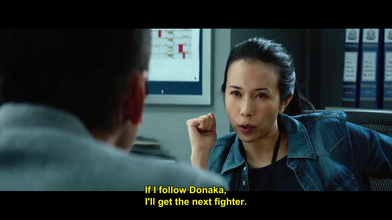 After that, we go back to the female cop who’s still investigating Keanu Reeves (apparently he’s the CEO of some security business) and gets the idea to follow him around until he finds a new fighter. She’ll then secretly recruit that guy as an informant. Great plan, except that you already TRIED that, and it ended up with the rat getting snuffed out by the bad guy!