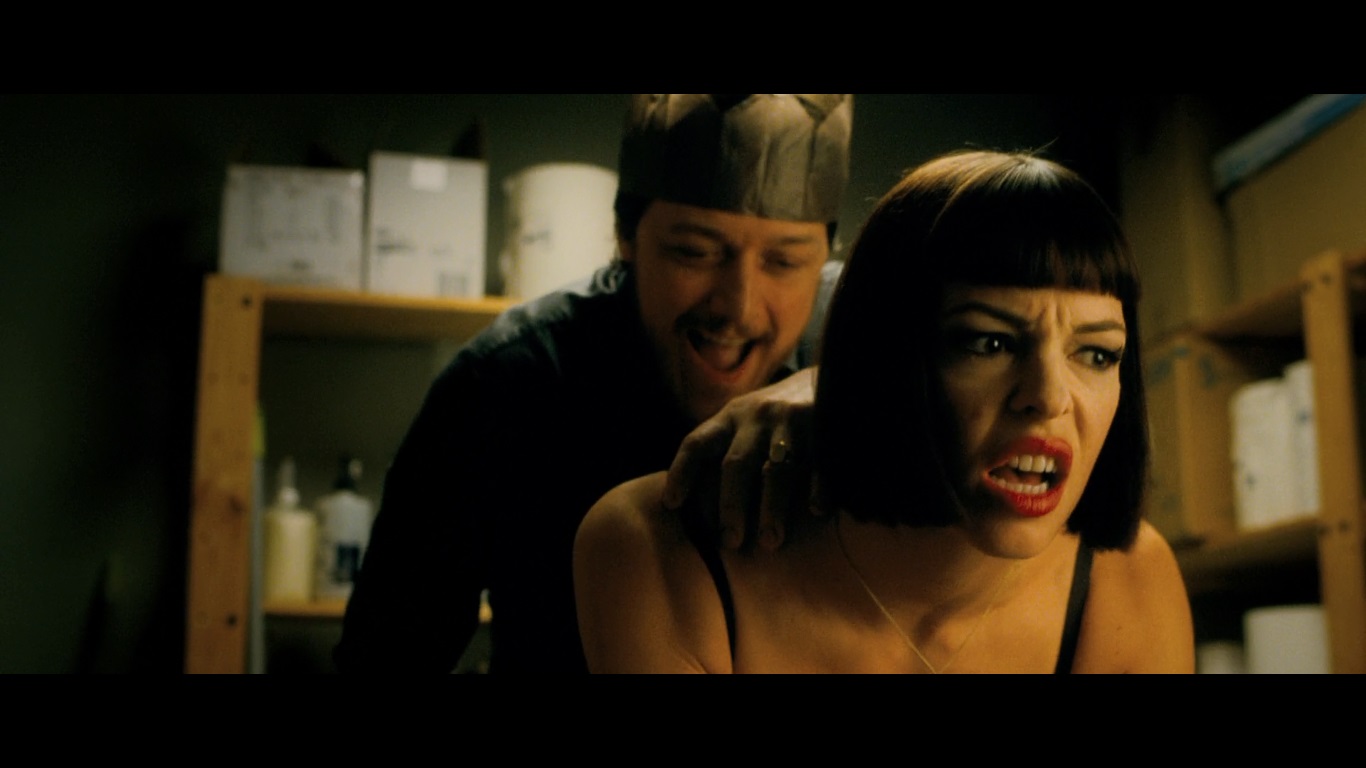 After that, we cut to James McAvoy (Bruce) being a glorious bastard while walking down the street. He’s a cop who’s trying to get a promotion by solving the case of the dead Japanese kid we saw earlier, and he spends the next ten minutes running down his competition for the job. The movie does a great job here of showing us the world through Bruce’s eyes. Not only do we see what he thinks of each person in creative little cutaways, but for the majority of the film, the cinematography is claustrophobic which puts us uncomfortably close to people we REALLY don’t want to be that close to.