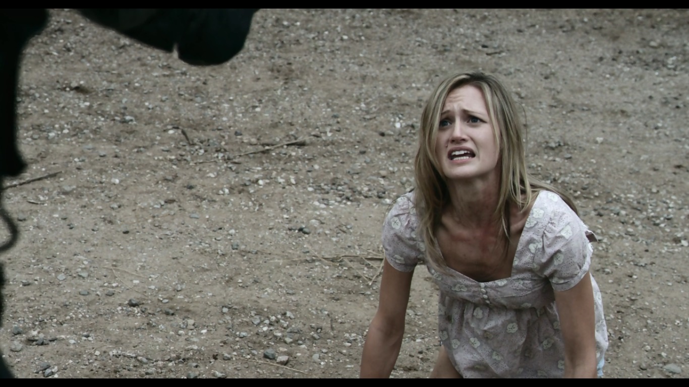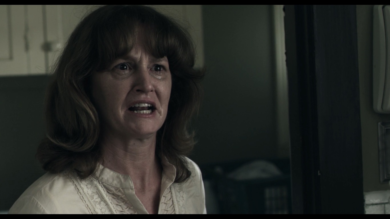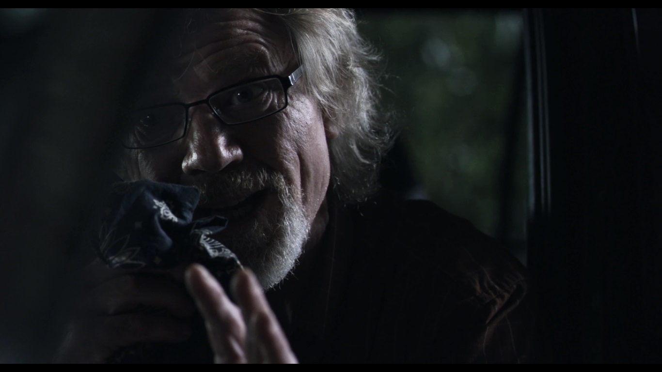 It’s god damn chilling and infuriating to watch this happen. NO ONE has any sense of reason or compassion because they’re filled with righteousness. To them, the man’s desperate flailing and struggles are nothing but the worthless pleas of a man riddled with sin. They don’t hesitate in what they’re doing because they know it to be the right thing, and that’s one of the things I hate more than anything else in this world. Anyone with the right amount of conviction can convince themselves that whatever awful fucking thing they do is justified in the eyes of God, society, or their own sense of right and wrong. They wrap his head in plastic and shoot him from the top of his head, killing him instantly. At least they didn’t torture him beforehand. They open up the cellar door (which is right in front of the cross, and we see that Travis and Billy-Ray are being held down there. They toss the dead body inside and lock the door, ready to start on their next victim. Jarod tries to convince them that he isn’t gay so that they might spare him, but Abin doesn’t give two shits because he was planning on having a four way with his friends and the woman.