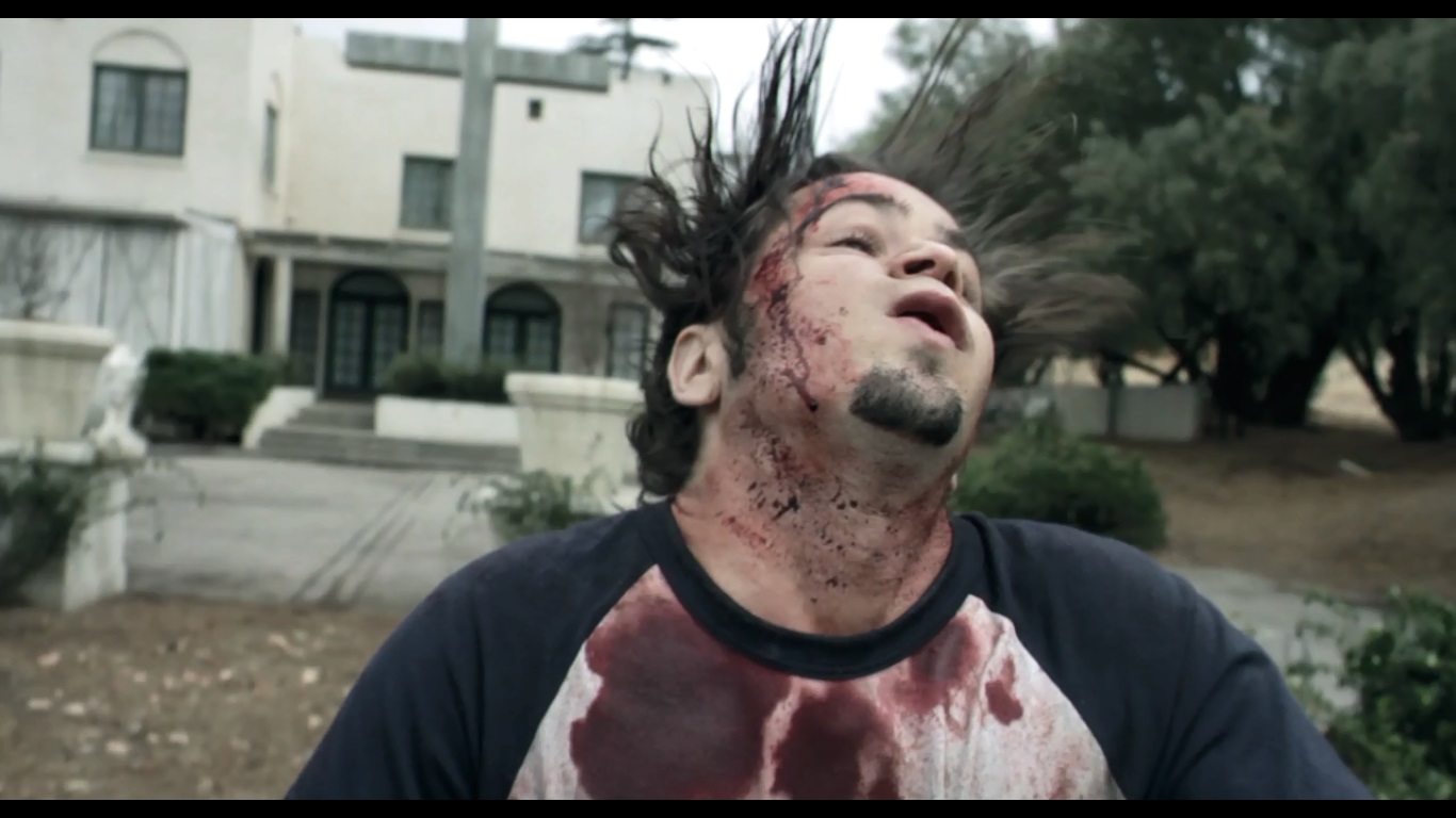 This completely breaks the flow of the movie and is really unnecessary. Do we need to know that they started stockpiling weapons after a small bomb went off somewhere close to their compound? NO! WE ALREADY KNOW THEY’RE FUCKING NUTS!!! We also find out that Goodman works for the ATF, and that the person on the other line is pushing for an immediate raid on the compound. John Goodman is hesitant however because of the ATF’s history of dealing with these situations. Okay, hold on. Are we expected to side with Goodman here? We KNOW these fuckers killing innocent people, so I doubt the movie wants us to do THAT! Then again, they not-so-subtly bring up Waco, which means… does Kevin Smith want us to think Waco was JUSTIFIED!?!? I don’t know. The whole scene just bugged me, so let’s move on. We cut back to the church basement where it turns out that Travis wasn’t actually dead, but just faking! Yay! That also explains how his body ended up in the gun room. He was waiting for an opportunity to go Rambo on their asses! He nervously (but determinedly) walks through the basement with an assault rifle, trying to find an escape route while also keeping an eye out for religious nut jobs. He eventually finds his way up to the main worship area where they’re having a funeral for the dead church guy.
