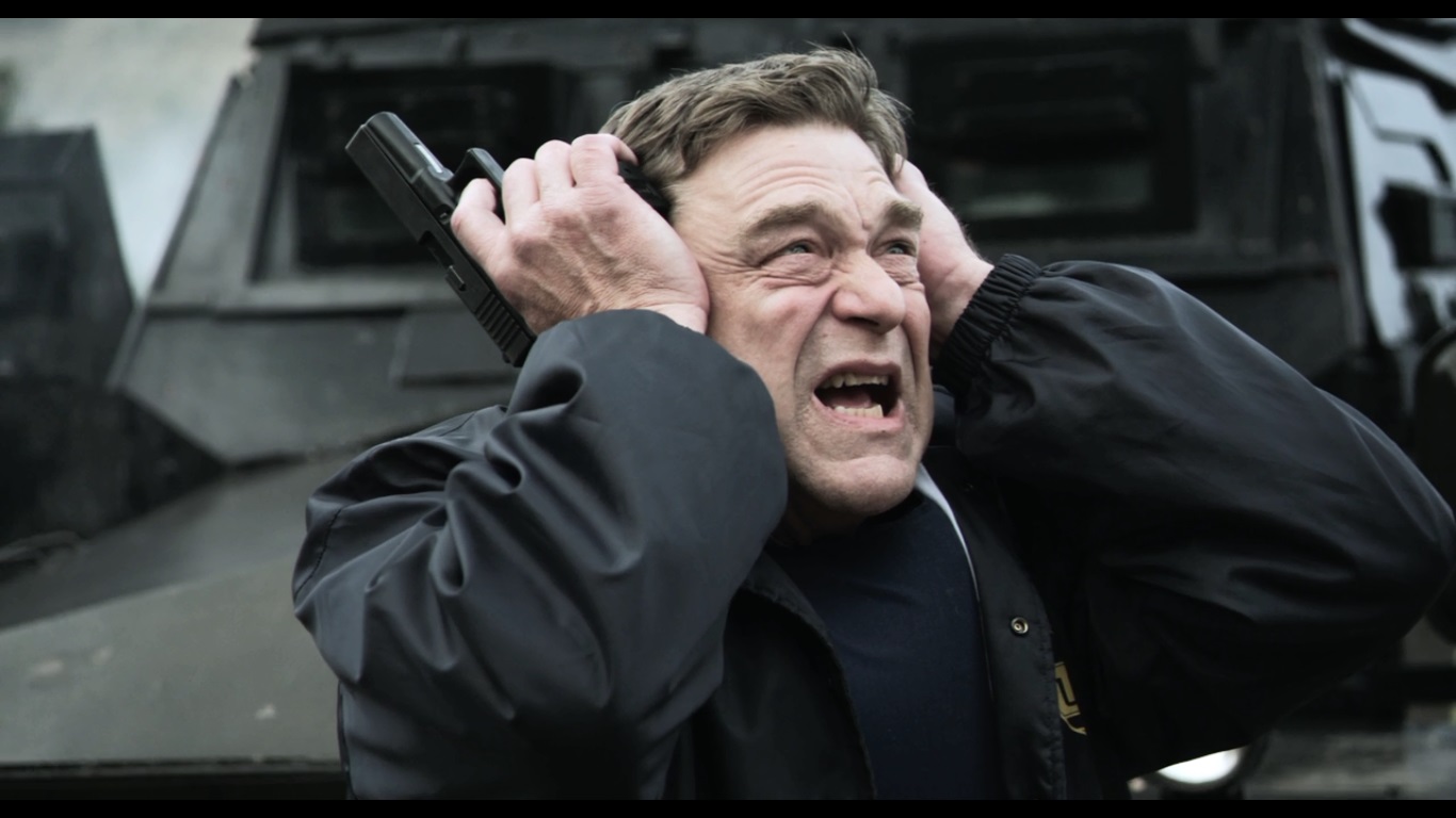 THANKFULLY!! The Sheriff doesn’t fully comply. It seems that he’s planning to tell someone and then kill himself, but who exactly is he going to tell? His fellow officers? State Troopers? National Guard? Nope! John Goodman.