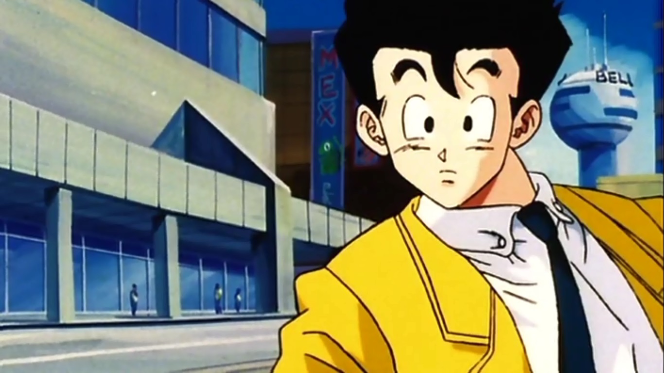 The episode begins with Gohan checking himself out in the mirror and trying to come up with badass lines.