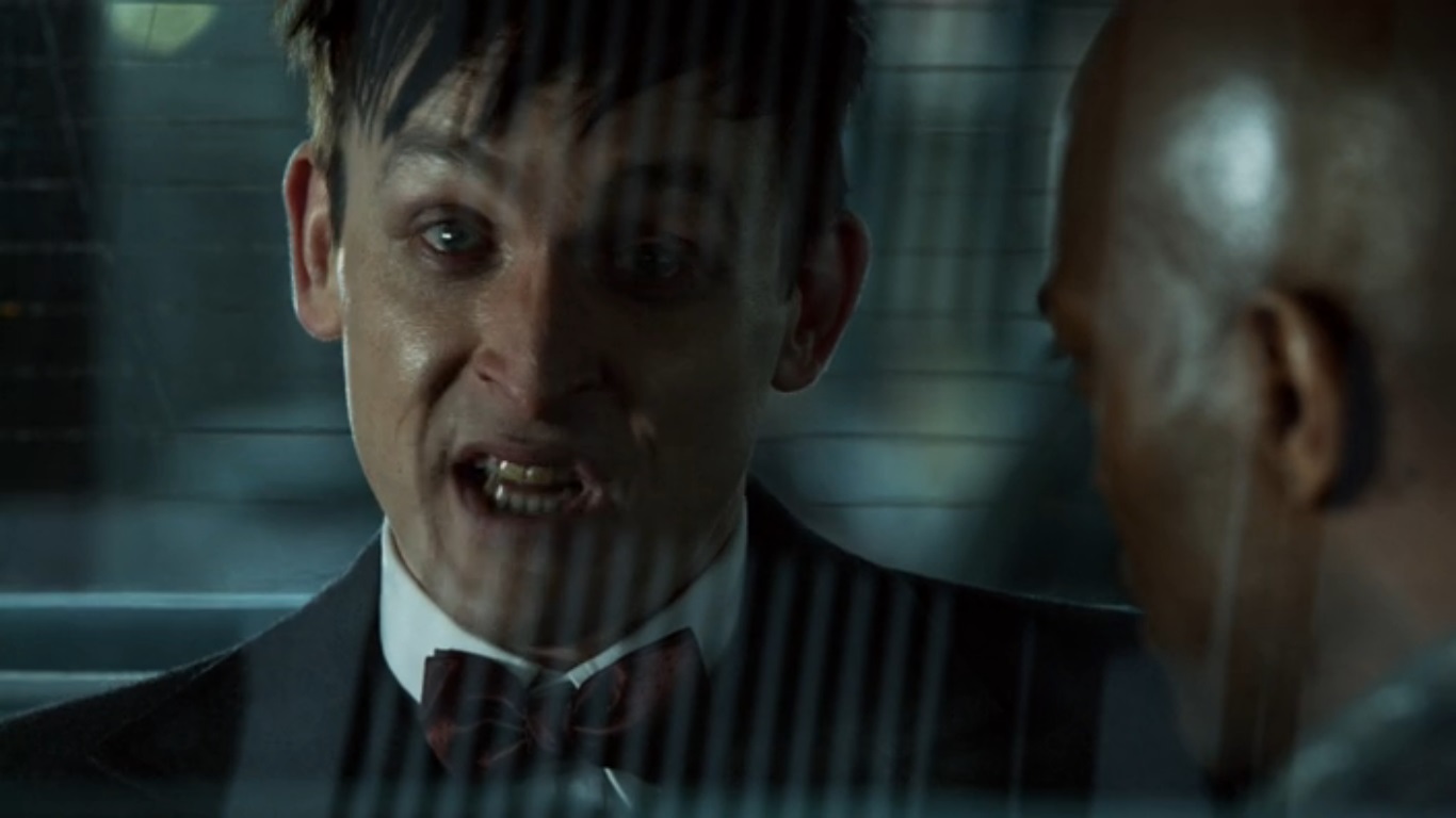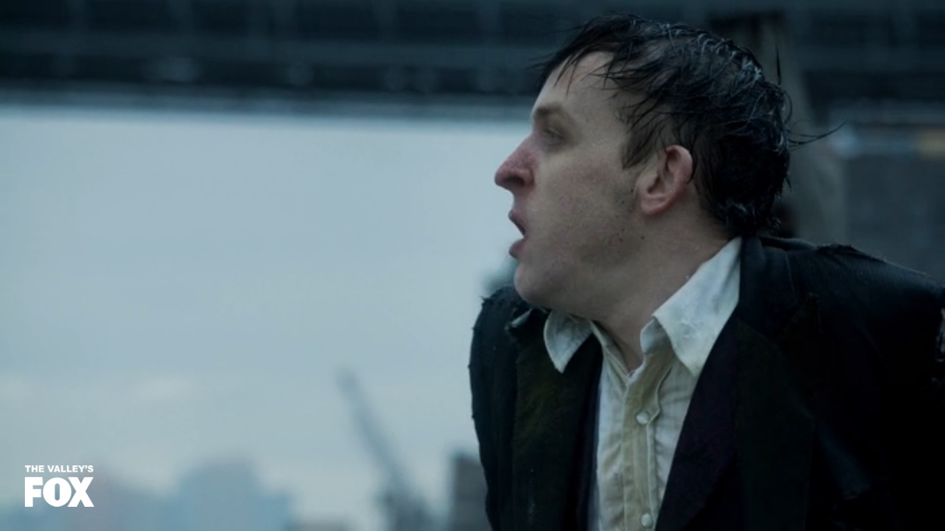 Once Bruce is brought down from the roof (trying to conquer his fears) Gordon lets him know that the case hasn’t been solved and that he’ll work hard to do it. Bruce is fine with it and the actor is actually starting to embody the character. We all heard the high pitched scream from the trailers, and sure enough he was on that level for most of his appearances in this episode. However, he now has a steely determination to him that reveals the change that is currently going on within him. The episode ends with Cobblepot washing to shore, killing some dude for a sandwich and looking towards Gotham with nothing but revenge and conquest in his heart.