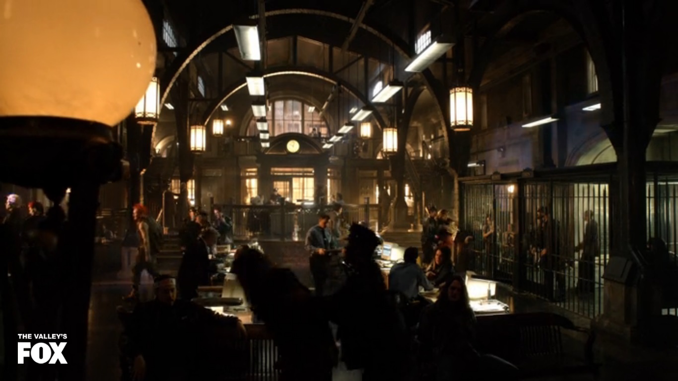 After that, we cut to the Gotham police depart which just looks kind of weird. It looks like a repurposed cathedral or something, what with the really high ceilings, and all the arches with lights on them.