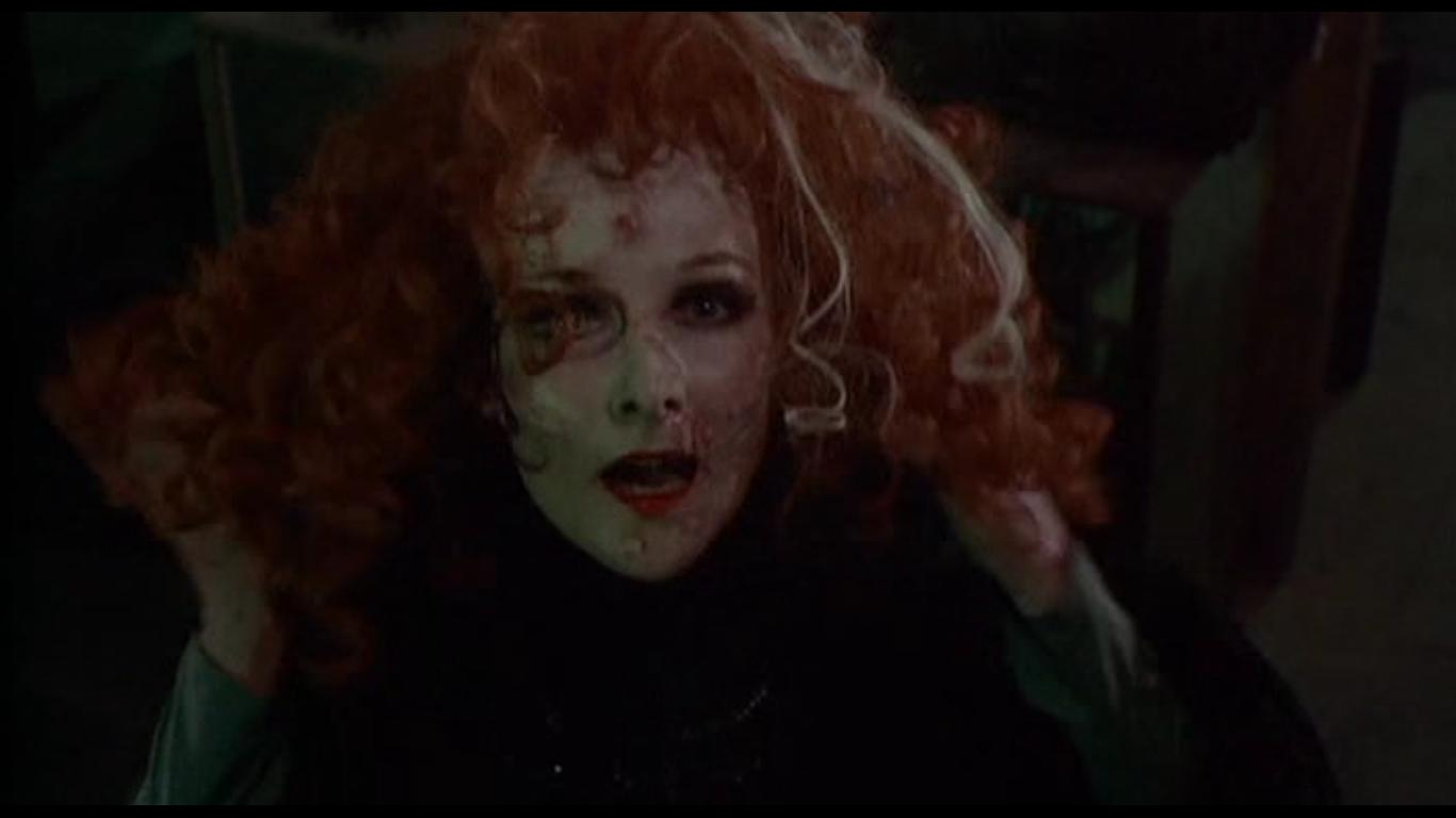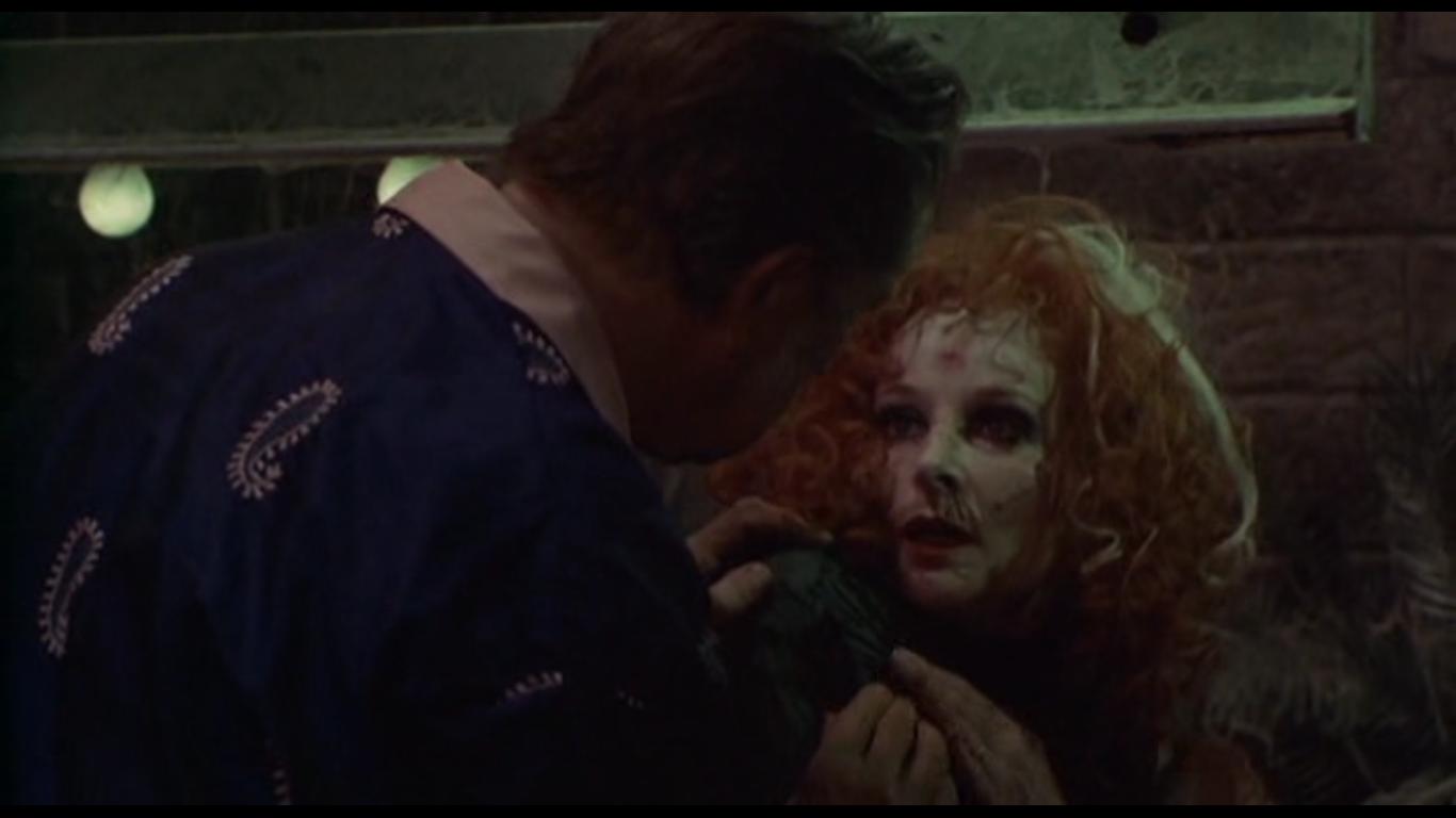 Okay, so this is where the movie’s age starts to rear it’s ugly head. After what happened to Ellen, the ex-girlfriend (Faye) married Herbert but their relationship was unhappy. Because of this, Faye started to sleep with other men. A couple of them ended up beating the shit out of her, setting her car on fire (with her in it), and rolling the flaming tomb over a god damn cliff. She survived, BUT the movie implies that because she’s “no longer pretty” she slowly went mad and spends her time in the basement with her pet spiders. I don’t know. Sure, you could say that the traumatic nature of the incident itself is what caused her to go crazy, but the whole beauty thing keeps getting repeated over and over again. I’d also say that it’s REALLY fucked up that Herbert keeps her in the fucking basement, but he may turn out to be the bad guy in this, so I’ll hold my criticism of that for now.