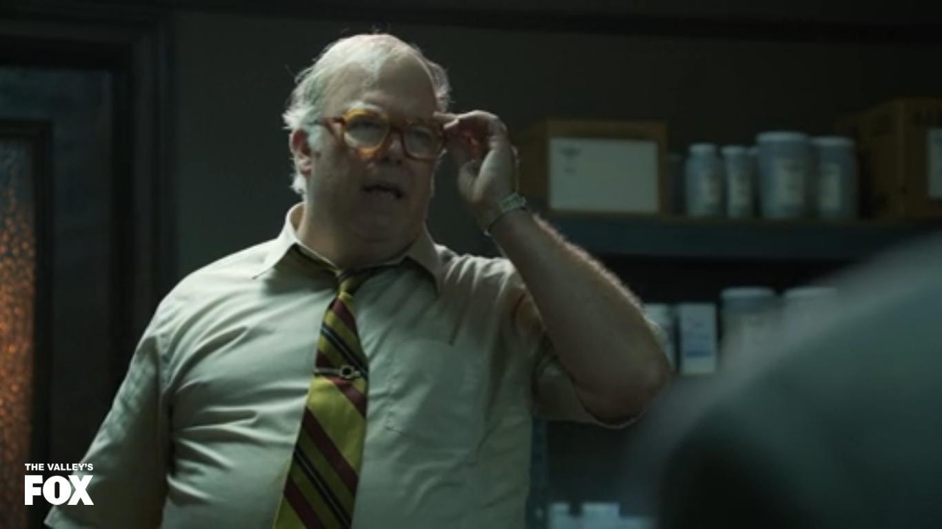 Oh, but then he admits she was right and begs her not to do it again. Yeah, that acknowledgment was totally sincere and not patronizing at all. The next day, Gordon and Bullock get another lead (once again through Ed Nigma’s work instead of their own) which is that there are only three companies in the city that produce the knock out drug found in the homeless kid. We cut to one of the above companies which is run by a Phillip Seymour Hoffman look alike as he’s berating the creepy duo for getting their actions on the front cover of the newspaper.