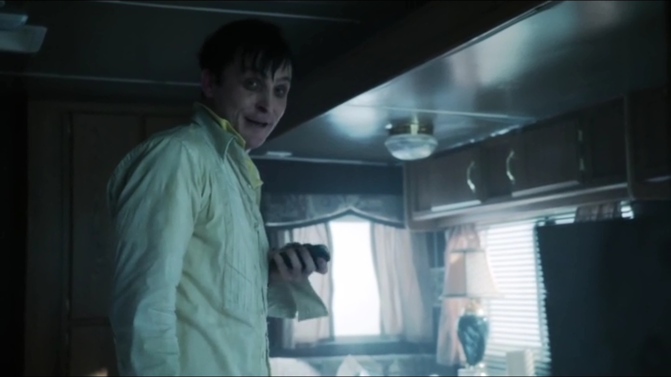 After her stupid little freak out, we cut to Montoya and Allen (the two super cops from the pilot) who are talking to Oswald’s mother because she hasn’t seen her son in a while. Oh jeez… I’m a fucking sap for these mama’s boy stories. Even though his mother is yet another cartoon character, I still feel really sorry for her. Montoya and Allen both know what happened to him though (or at least THINK they know what happened to him) but aren’t telling the mother. Now this is where the scene is confusing to me. She doesn’t know who the two of them are, which means that she didn’t call the cops to report her son was missing. That means THEY came to her. WHY!? Okay, if you don’t recall Oswald was a snitch for these two detectives and was supposed to be killed in the pilot, except he wasn’t because Gordon faked it. So if they know what happened to him, and the mother is completely clueless about the boy’s criminal activities, then why the hell are they visiting her!? After that is another scene with Fish Mooney which is fucking pointless, so we’ll skip ahead to Oswald who’s looking for a place to stay while he gets his shit together. I’m actually starting to warm up to the guy now that we see him dealing with hardships. He’s resourceful and smart, but he’s still trying to crawl his way up from the bottom so the road ahead for him is not an easy one.