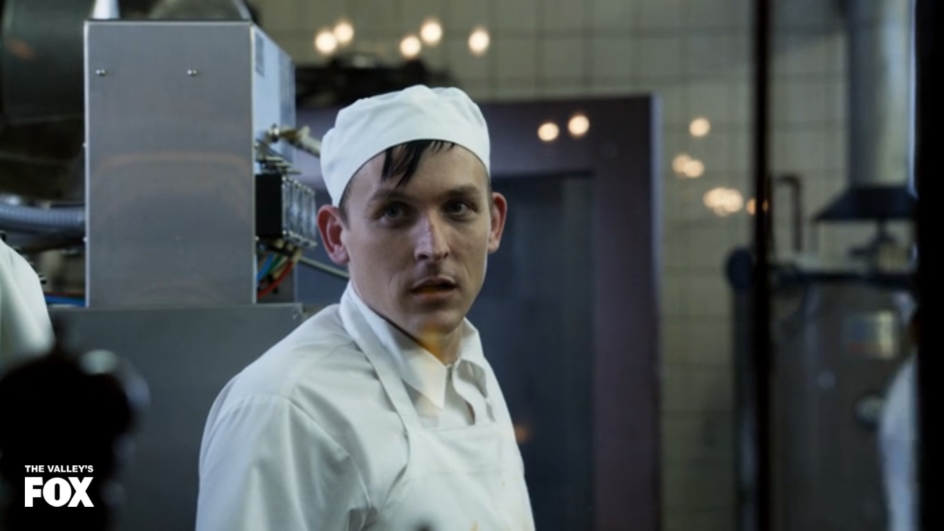 Yeah, she’s still the worst thing in this show (followed closely by Montoya who’ll be showing up soon enough). She’s just a freaking robot who gives the show sex appeal and keeps reminding Gordon how awesome he is. Yuck, give her SOMETHING to do or just get rid of her, and for fuck’s sake DON’T MAKE HER A DAMSEL IN DISTRESS ONCE YOU RUN OUT OF IDEAS FOR THIS SHOW!! At the office, Gordon and Bullock are getting chewed out be the Captain once again because Balloon Man is becoming a hero to the city. The only lead they have is the guy who stole balloons from the manufacturer, but they haven’t found him yet. Bullock is ready to finger him for the deaths (naturally because it’s the easiest option) but Gordon thinks otherwise which means that the kid can’t possibly be the killer. Gordon and Bullock go out on the streets to find the kid, but Bullock decides to take the lead which means he chats up a bunch of prostitutes and beats up random people. I wouldn’t mind so much except for two things. First of all, this would have been a good chance to give Bullock a redeeming quality (he can get stuff done), but instead the search is fruitless. He really hasn’t done anything worth a damn since the pilot where he tried (and failed) to rescue Gordon, so I was kind of hoping he’d do SOMETHING to make him not so one dimensional and possibly give us a reason to like him. Second, the whole scene is a montage which means that we don’t get context for any of his actions. This only further cements him as a clichéd dirty cop instead of someone who we MIGHT be able to sympathize with if we knew WHO he was beating up and WHY. After the pointless search, we cut back to Oswald who’s now working as the bus boy in the Italian restaurant. This scene is ALSO a wasted opportunity to show some more of Oswald’s conniving and intellect. It turns out that the restaurant is a popular place for one of the lower tier mob bosses in the city. Wouldn’t it be great if Oswald knew this and THAT was why he wanted to be a god damn bus boy? Instead, he had no fucking clue so this ends up feeling like a completely unbelievable coincidence that a guy trying to get back into the crime world JUST SO HAPPENS to be working at a restaurant frequented by a mid-range mobster.