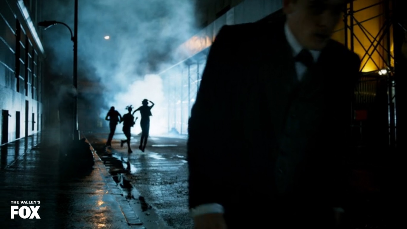 Barbara can’t tell either and thinks that there’s absolutely nothing wrong with this weird guy coming to their doorstep uninvited and claiming to a buddy of your boyfriend, who has just broken out into a cold sweat. Oswald then goes on to introduce himself to Baraba with a fake as hell sounding name (Peter Humbled) and is trying to be nice to both her and Gordon. Gordon has other plans however and walks Oswald outside where he then proceeds to threaten to murder the guy. It’s a bit much considering how much of a fucking straight arrow Gordon is, but it DOES come across as a hollow threat so I’ll let it slide. Oswald explains that he only came to him out of desperation and that a war is going to happen soon between the rival mobs, the catalyst of which is going to be the rebuilding of the Arkham district. Oswald is a bit cagey with the details here, but he proposes is to be a rat for Gordon so that he’ll have an advantage when the criminals start to make their moves. He doesn’t ask for anything specifically in return, but I’m guess he hopes to rebuild what ends up being destroyed when the crime families go to war. Gordon is obviously skeptical about the whole thing, but before he can refuse Oswald’s offer, some random people start dancing in the street which distracts Gordon long enough for Oswald to run off. I’m sorry, WHAT!?