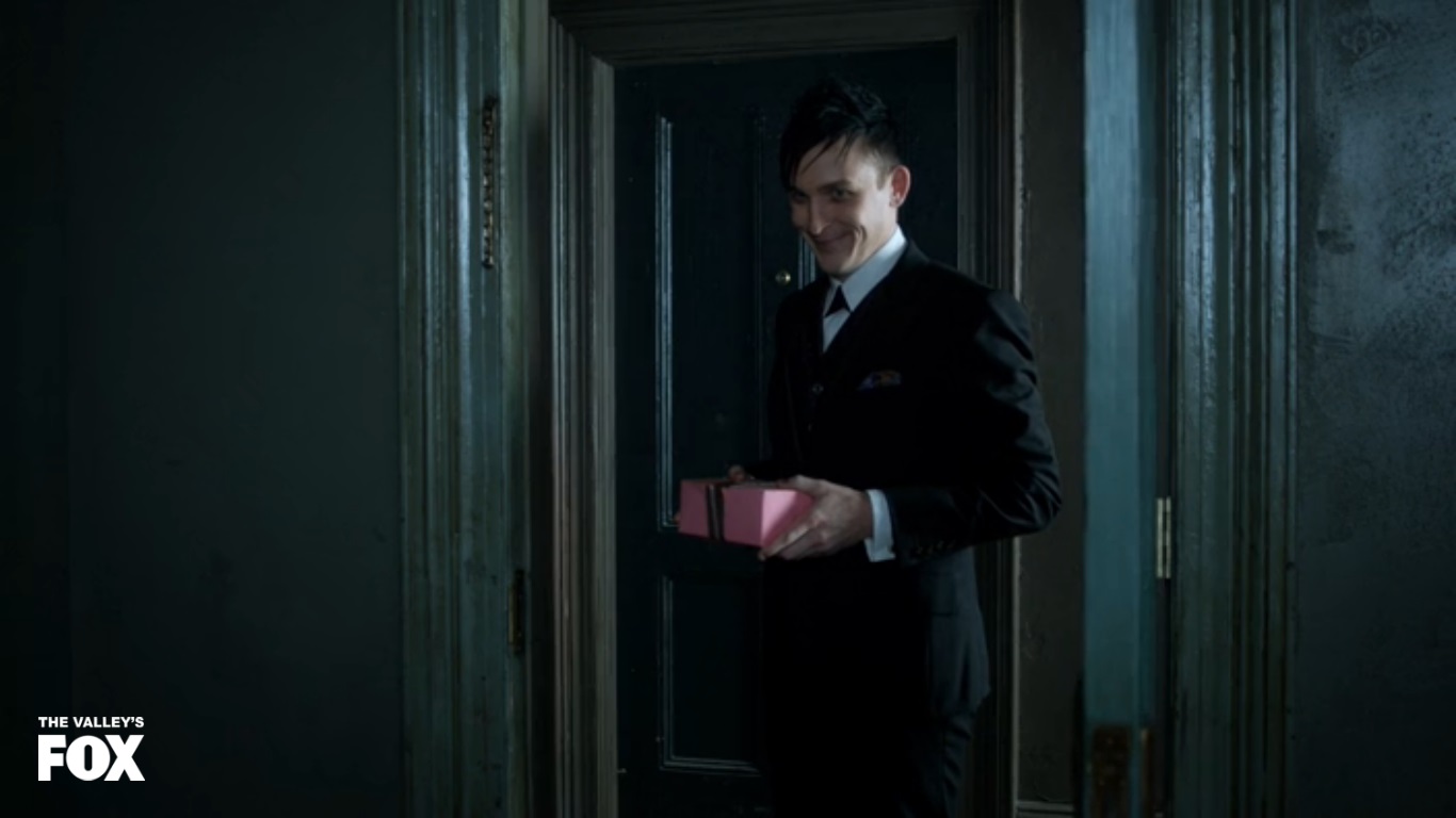 I still think Oswald is the best part of this show, and he continues to show his tenacity and drive to succeed in this world. It was a big risk to try and hide that money, but he wants to stand out to Maroni’s men. It’s too bad we have to follow this awesome scene with one of Gordon and Barbara (the latter of whom has yet to leave the apartment yet since the show started). She’s being passive aggressive at him which leads him to ask what’s up. Turns out she’s still stewing about the whole “Montoya says you killed someone” thing. Now admittedly that information could be damaging to a relationship, but considering who it came from (an ex-girlfriend with a history of abusive behavior) I was hoping she’d let the whole thing go. No such luck, so Gordon has to dance around the fact that he didn’t kill someone but was supposed to. At some point the conversation turns around so that Barbara has to confess that Montoya and her dated, and the scene… could have been worse. No real conflict about the whole “woman woman” thing, but he DOES pull a “You lied to me” out of fucking nowhere.