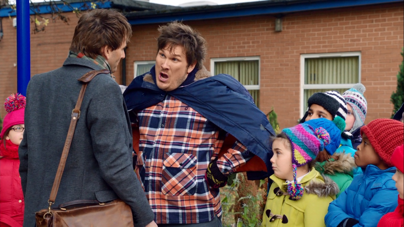 After Mr. Poppy lands the deciding blow by licking Shakespeare’s face, they go in to see Father Christmas and ask him to grant them their wish to win the competition.  I just can’t get into this.  There’s no reason these kids should go to this competition.  The school said no, and I have to imagine they are WAY behind on their lessons if Mr. Poppy is the only one around most of the time.  The kids are cute enough, and Mr. Poppy has a genuine rapport with them, but I don’t see them as underdogs.  They’re just a bunch of kids with no direction who are being led by an irresponsible man child.  They get back to school (no one seems to care that Mr. Poppy took the kids away for an hour) and find Mr. Peterson waiting for them and ready to start the lessons.  For one moment, it seems like he’s actually gonna do what he’s SUPPOSED to do and that is to tell Mr. Poppy to shut up and get the kids started on some reading exercises.