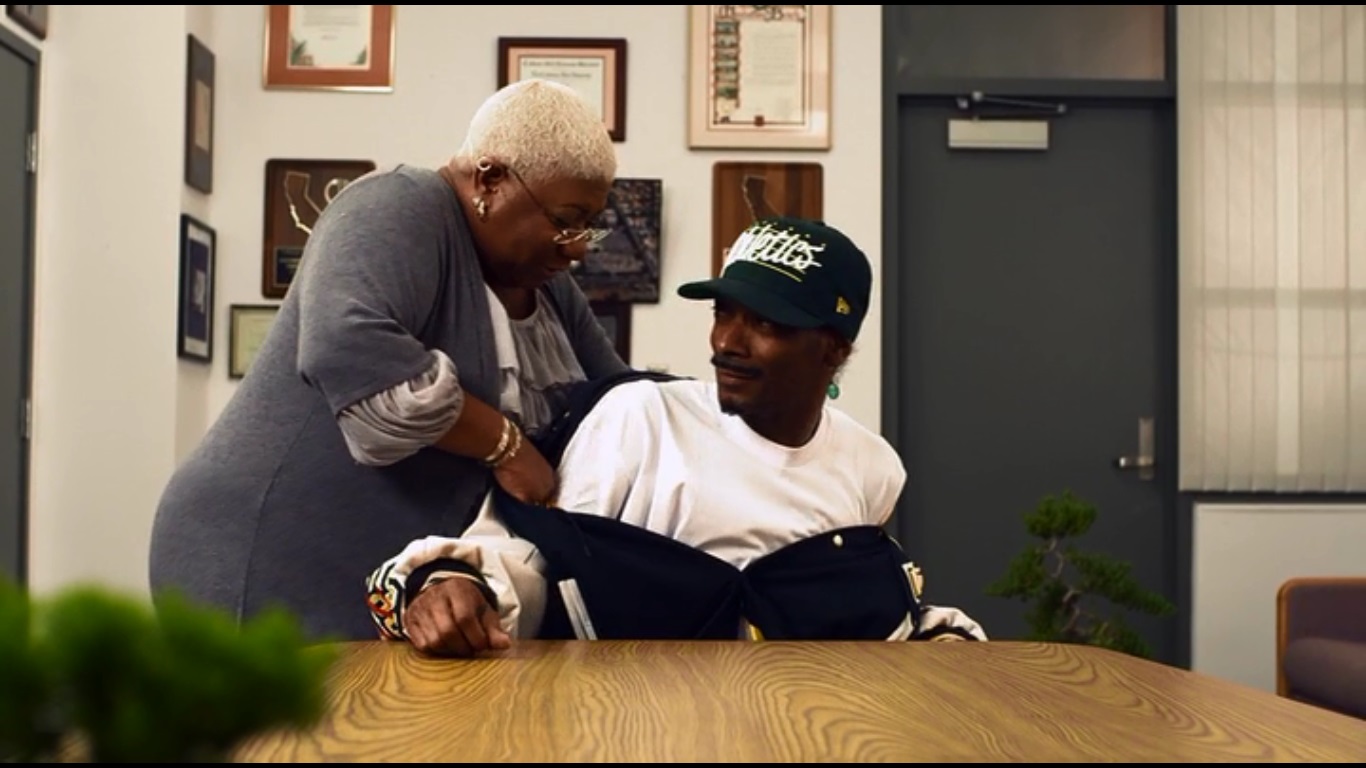 NO ONE WANTS YOU AROUND SLOW BURN!! You’re just fucking with the pacing of this film! He spouts some misogynistic bullshit about “controlling bitches” and then fucks off so that we can get back to what we were watching before being so RUDLEY interrupted. Mac is in the principal’s office where he’s about to be expelled by the Assistant Principal. While this seems to be a VERY sensible thing to do, Mac is saved when the actual principal of this school comes in and lets him off the hook. It turns out he’s been banging her for a while now in order to get a free pass. You know, I’d normally be annoyed by a character like this that just skirts by and cons his way through life, but Snoop Dogg has so much charisma oozing out of him that I can’t help but like his character.