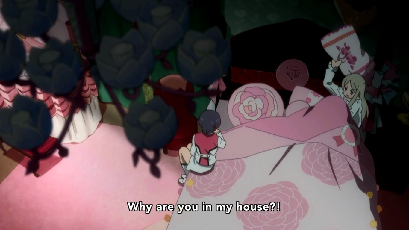 There’s not as much wiggle room about what EATING someone means. Sure, we can nyuk nyuk about cunnilingus all we want (I certainly have), but the way they use the word in THIS scene can only imply killing and devouring an individual. We’ve seen Ginko’s fantasies about Kureha, and NONE of them implied that she wants anything other than sex, which I guess might be the point… somehow. Is sex supposed to be the same as murdering and eating someone? WHY!? I don’t know, and maybe the show doesn’t want me to know yet… or ever. Life Cool calls bull spit on Ginko’s plan to “save” Kureha and rightfully points out that she wants to keep Kureha from making any friends so that she can have her to herself. Life Beauty and Lulu try to defend her, but Ginko flat out admits that she’s being selfish in the name of love. She also admits to committing a serious crime, but we don’t get the details because Life Beauty stops her from elaborating.