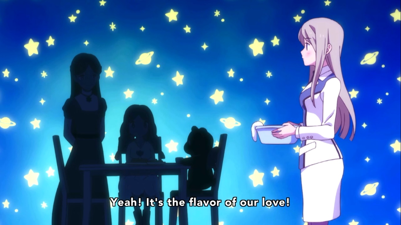The episode begins with a flashback to when Kureha’s mother was still alive and she seems to be writing the ending to the book she didn’t finish. Spoiler alert: The two broke the mirror, made their promise kiss, and lived happily ever after. Kureha asks her mother what the new story is about and she tells the young child that it’s about her adventures with the friend that she made.