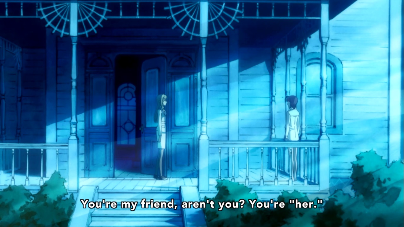 Moving the topic of discussion to something less gruesome, Kureha asks Principal Yurika about her friend from childhood who she can’t remember but calls her “Her”. Wait, what? She uses a personal pronoun as a pet name?