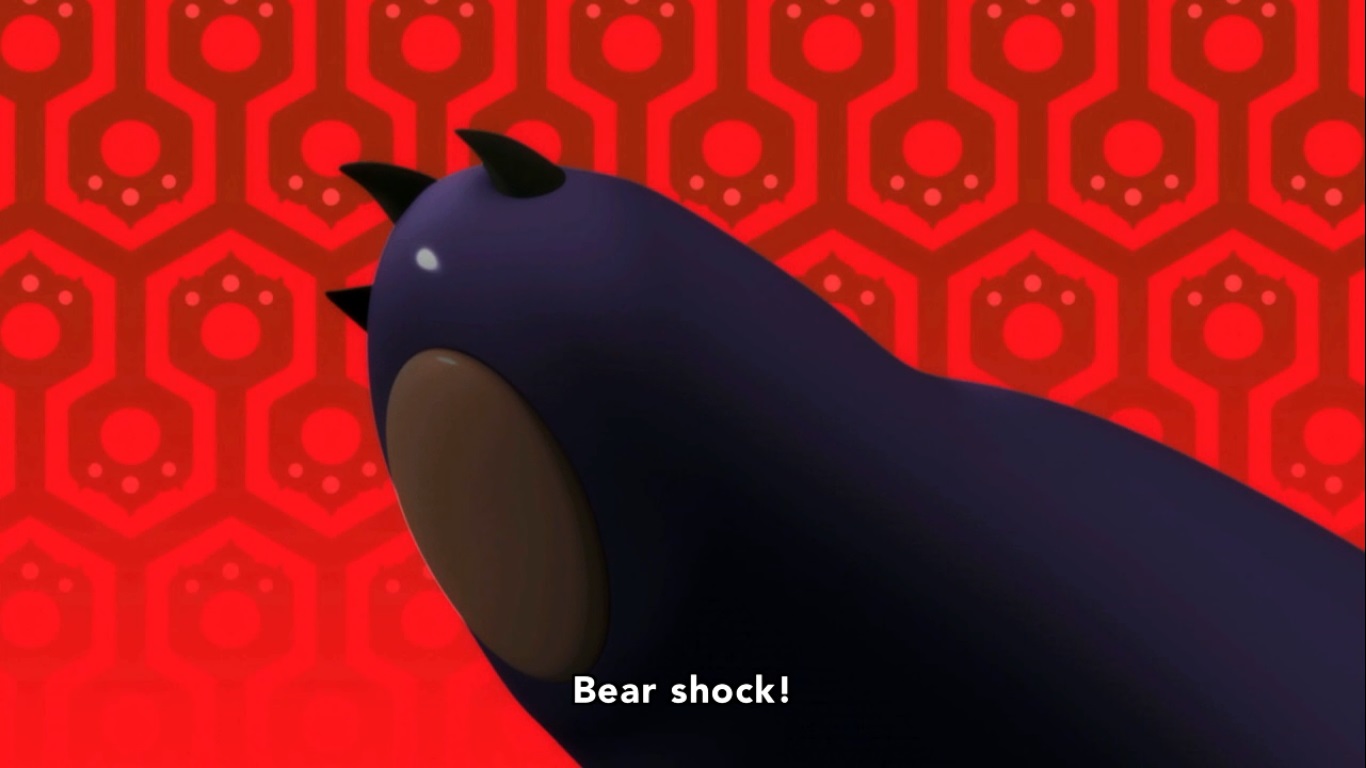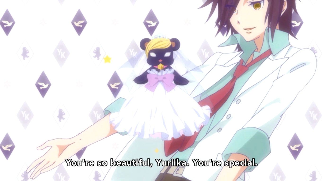 Yuriika’s upbringing was anything but wholesome considering she was locked in a damn box most of her childhood, though that might just be a metaphor. I honestly have no idea at this point. The principal showered her with adoration and love because she was pure and unsullied by the world, hence why she had to stay in a box lest she be tainted. One day however, the principal decided to leave because he found someone even more precious. We don’t actually SEE this challenger, but needless to say that Yuriika doesn’t take it well and does the one thing a bear knows how to do.