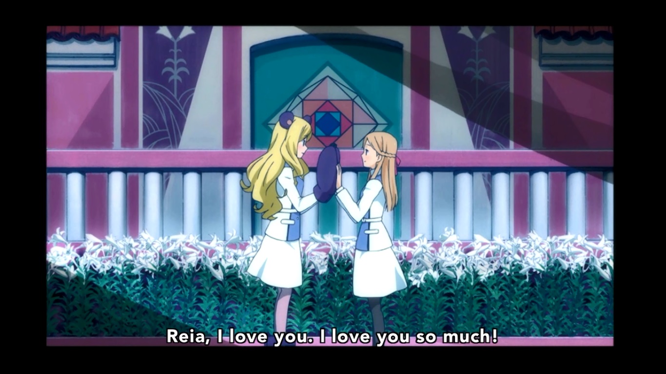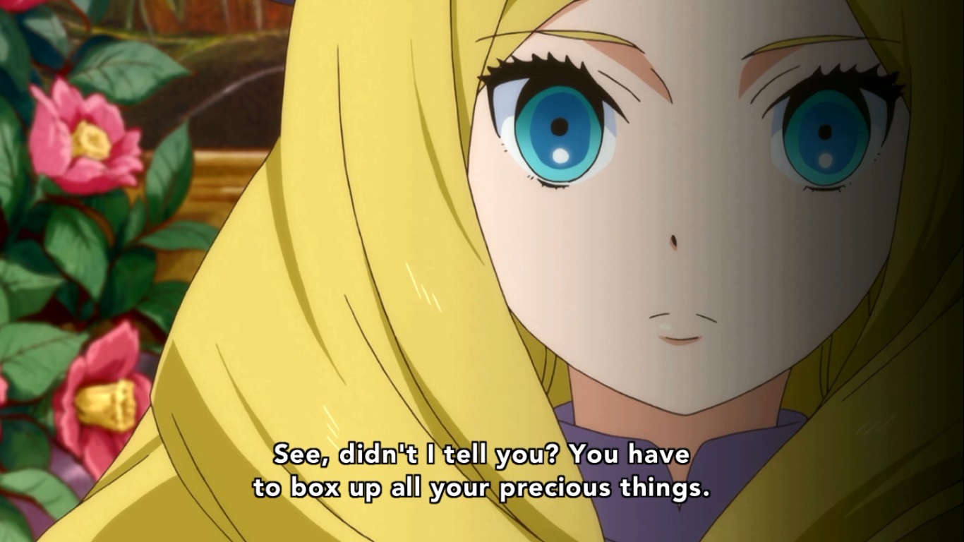 I believe we cut to a couple of years after that event where Yuriika is cutting the flowers out of the flowerbed in order to box them up before they wilt. Despite the terrible way her guardian treated her, she’s still taking their lessons to heart and has a really messed up and selfish view of love. Fortunately for Yuriika, Kureha’s mother (Reia) approaches her and starts to make friends.