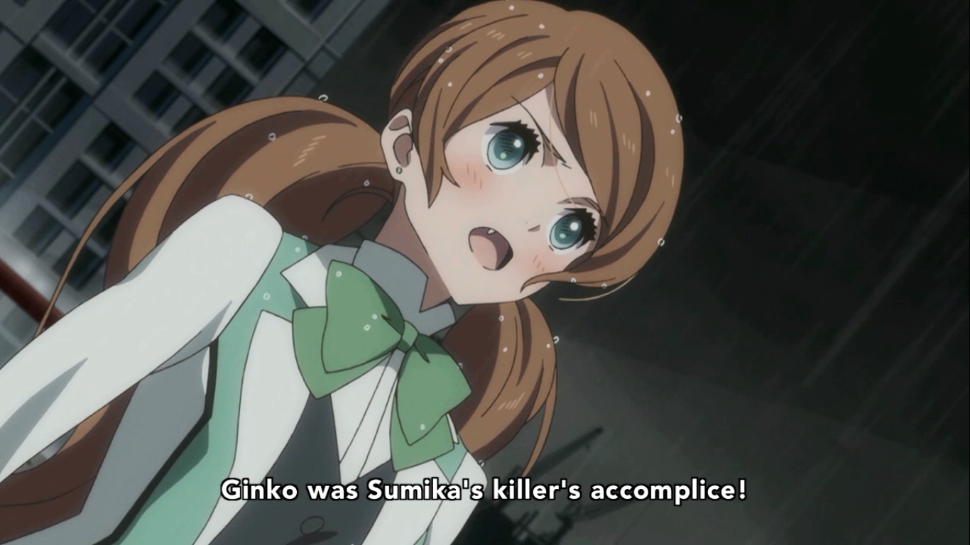 Back at the exclusion ceremony, everyone is casting their vote but Kureha is unable to do so. Despite Ginko’s name showing up on the list and considering what she did, Kureha is still unable to go through with it. This leads to a flashback of the night before where we FINALLY know what Lulu said.