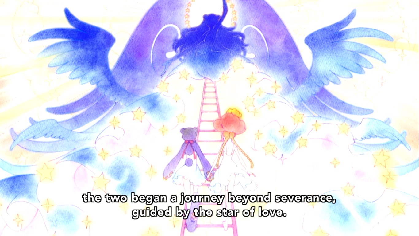 So in the time between this episode and the last, the Exclusion Group has gotten military-grade weaponry, SWAT trucks, and bear powered generators!? Oh, AND THEY WENT ALL FRANKENSTEIN ON KONOMI!? I don’t even know if this is supposed to MEAN anything, or if it’s intentionally absurd. I’m leaning towards the latter. The group asks Lulu if she’s seen anything suspicious and Lulu denies it in a fervent and unconvincing manner that still somehow fools the group. The officials of the Severance Court are watching on and once again start to muse about character motivations. Wait a minute… I think I finally figured their purpose in these scenes! In the last few episodes that they appeared in the real world, they’ve been representative of the audience. They’ve been asking the obvious questions, coming up with their own theories, and perving on the girls in a way that most (if not all) viewers of the show are bound to do. That said, I’m still not sure what to think of the fact that the show is flat out acknowledging how obtuse this material is. If they KNEW it would be confusing, then they probably should have cleared it up a bit is all I’m saying. We cut from the Officials of the Severance Court to Kureha in her room reading the book that her mother left her again. While she reads it, we can see parallels to the goings-on in the real world, mostly pertaining to the Exclusion Group’s increased efforts to stop the bears from encroaching any further into the human world. Kureha eventually gets to the part of the story she found in Yuriika’s office and it turns out… well, it turns out to be the ending we already heard it was, but at least Kureha knows it now. For a quick refresher, the Moon Girl and the Forrest Girl decided to risk their lives to destroy the wall that separated them and they succeeded in their goal.