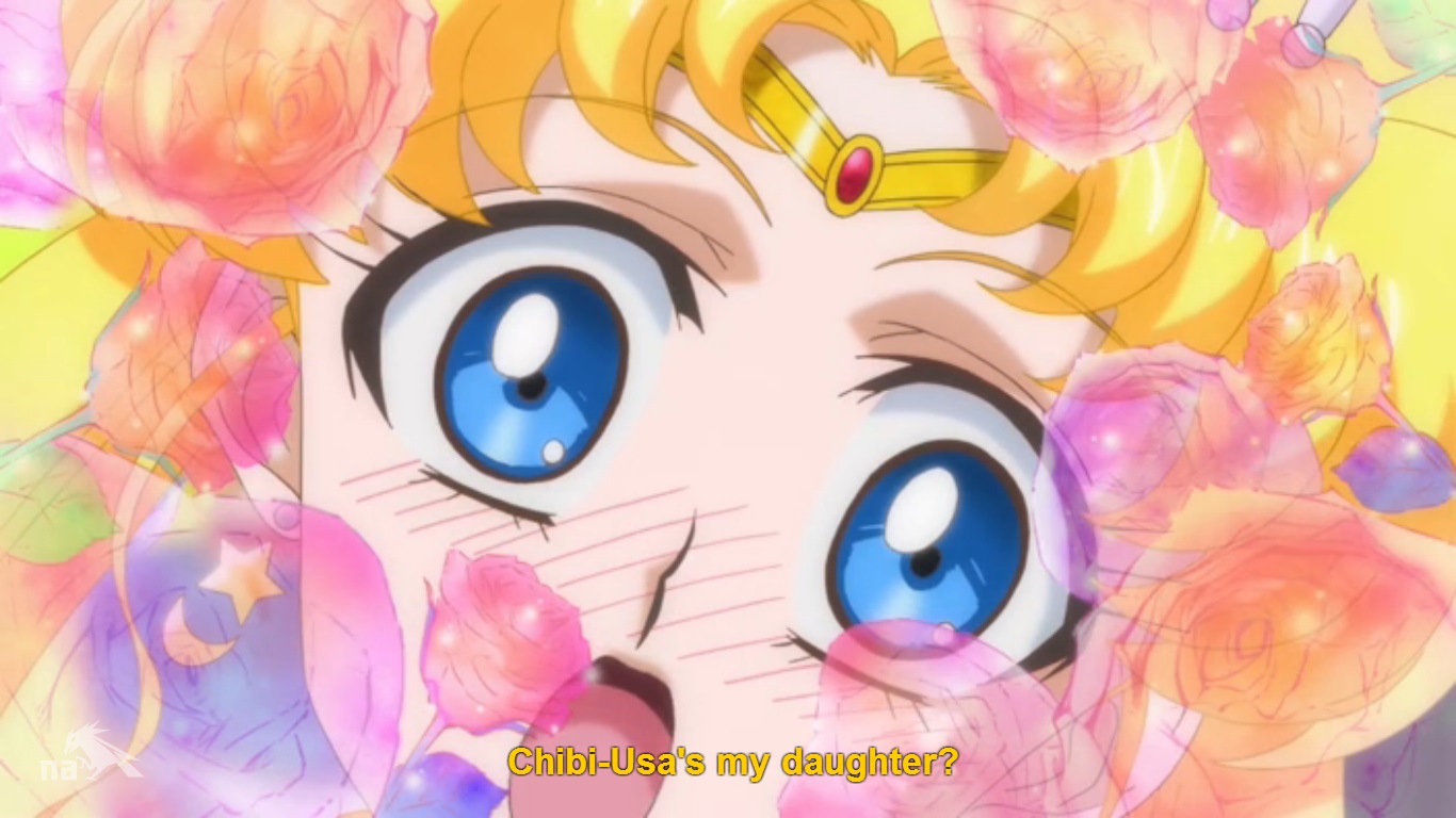Hold on a damn minute. Wasn’t this dude JUST petting a cat!? NOW he’s a hologram without tactile feedback!?!? The Ghost King here explains that he is the “future” Tuxedo Mask rather than a descendent of Tuxedo Mask. He also points out that that means Chibi-Usa is their offspring.