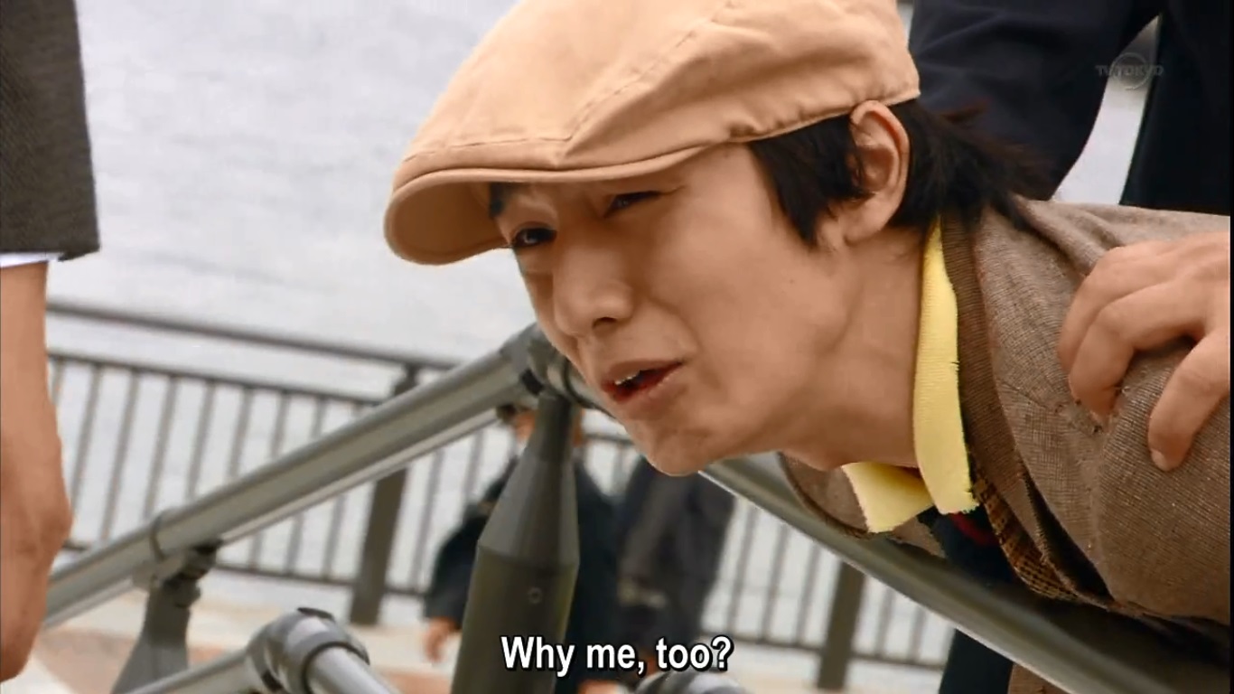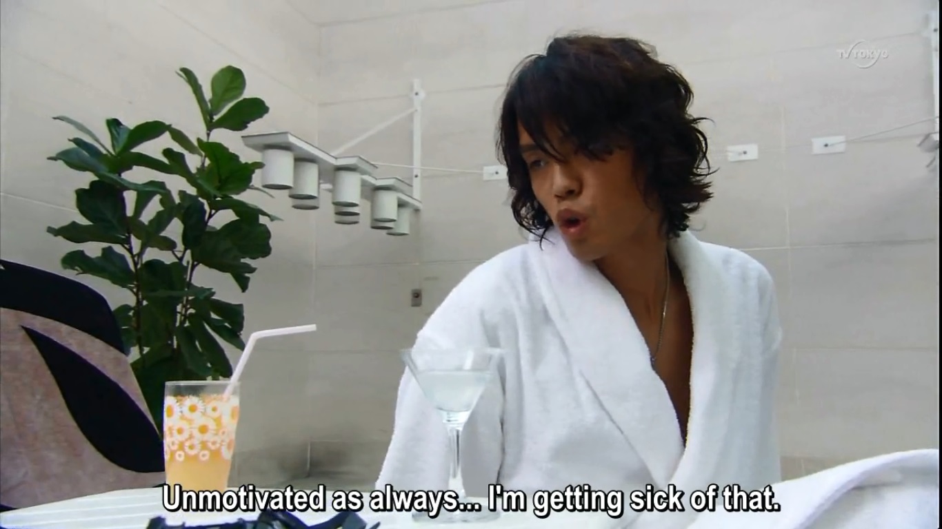Nana actually does explain that her brother was REALLY into her so we at least have a plausible motive for why he killer the guy. Still. I’ve got my eye on her!! We cut to some dude who’s auditioning for the Free movie and starts talking to himself once he’s out of the pool. The guy seems to have a split personality where one side of him acts like a suave businessman and the other side acts like a petulant child.