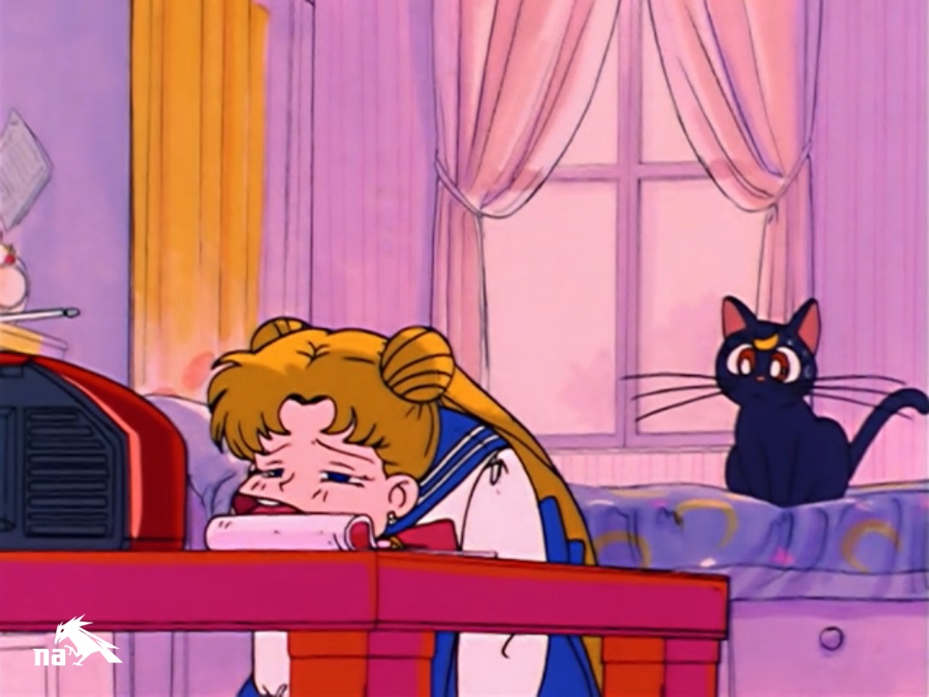 Mamoru is acting like such a dick in this! I guess he’s gonna turn around at some point, but why do all these one true love stories have to start with them hating each other’s guts!? For some reason, Usagi’s hate boner for the guy steels her resolve to write the best darn love letter in the world! Much like my own writing process however, she spends most of her time goofing off and not getting anything done.