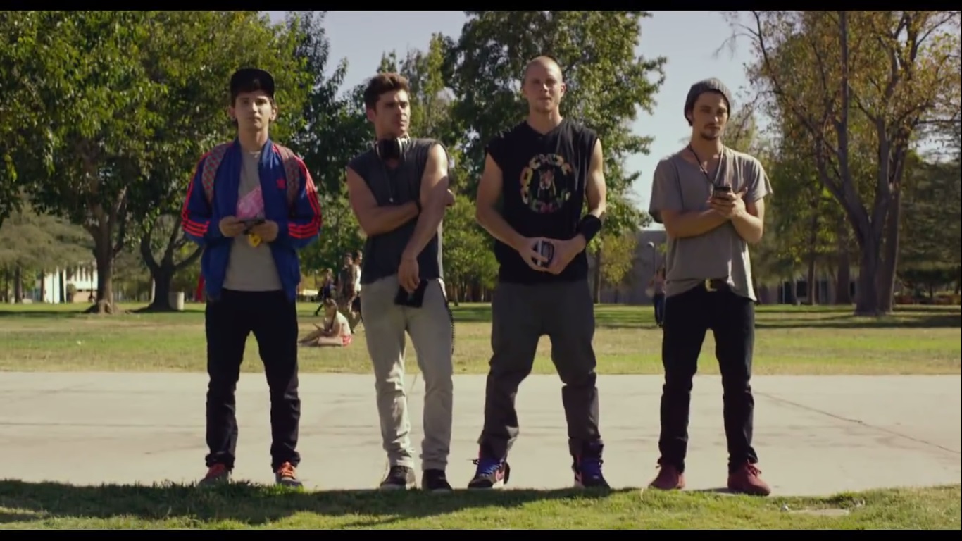 The movie is about Cole (Zac Efron) who’s a struggling Electronica artist in the San Fernando Valley. Like most creative types, he spends half his time working on his trade and the other half not doing much else, but he clearly has a passion for what he does and has aspirations to be one of the best. His three friends are Mason, Ollie, and Squirrel (played by Jonny Weston, Shiloh Fernandez, and Alex Shaffer respectively), and they don’t seem to have much going on in their lives either. Much less in fact considering that aside from Shiloh Fernandez (who half-heartedly wants to be an actor), none of them even have much of a dream to be striving towards and are just running out the clock on their twenties. They’re all still young even if the actors are clearly pushing thirty, but they are reaching the point in their lives where they can’t keep goofing around and have to either commit to whatever goals they have or move on to something else. Opportunity comes a knocking for Cole as he finds himself chatting up another electronica artist called James (Wes Bently) who has indeed made it in the industry and the two of them become friends in a sort of mentor mentee relationship. As with all music stories though, there has to be something to strain the friendship and in this case it’s James’s assistant Sophie (Emily Ratajkowski) who Cole starts crushing on immediately despite her relationship with James outside of her role as his employee. Will Cole be able to handle the modicum of success that slowly starts to take form now that he knows someone in the industry who’s willing to give him a chance? Will everything fall apart because he’s a dumb ass twenty-something that refuses to find ANY other person to fall in love with? Will his friends… do other stuff?