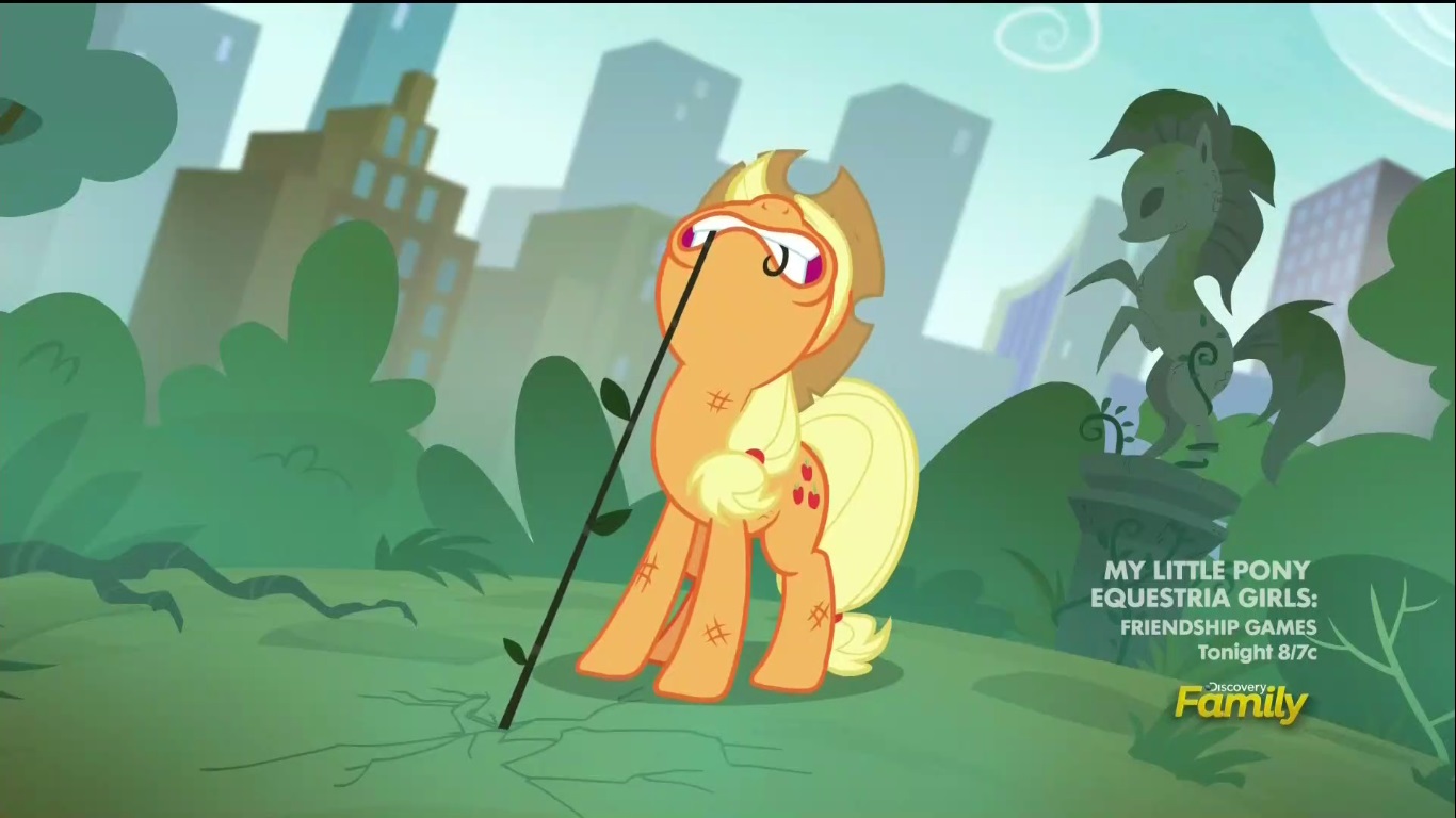 What the hell Cutie Map!?  Why did you send them to the jerk face capital of the world so they can get yelled at and pull weeds!?  Not only that, but how the hell did things get THIS bad!?  You’re telling me that no one found a practical use for this place and it just fell into disrepair?  At the very least, isn’t this a public park which means that the city should be paying for its maintenance and upkeep?  Now Applejack has to fix this place all on her own?  This HAS to be the work of Discord!  Not only that but apparently the dress rehearsal is tonight (how soon was Coco planning on putting this thing on!?) and the actors will need a place to work so Applejack needs to work fast.  Cue the montage!!