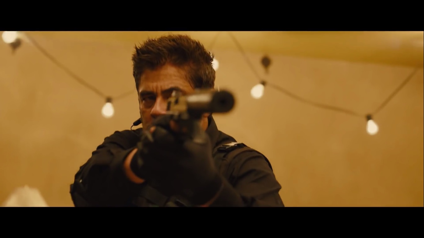 This really is what keeps this movie from being as good as it should be. I can complain about small stuff like a bar scene that goes on too long or that OCCASIONALLY the motion blur is too much (I’d love to see certain parts of this shot at 60FPS), but those are small quibbles that I could get over. The story itself just doesn’t work especially towards the end and this is all due to the message it wants to send. It’s that bullshit of “when you fight with monsters, don’t be surprised when you become one of them” or “If this many people are getting hurt, how could the ends justify the means?” Sorry, but despite how hard they try to get that across, I just don’t buy that Josh Brolin or Benicio Del Toro are as bad as the scumbags who amputate dead bodies and hang them off of bridges. Don’t get me wrong. Brolin and Del Toro are pretty lousy throughout this, but for most of the running time they were playing it off as more of a “shades of gray” thing which I thought was much more compelling. Kate is brought on to this task force because she’s good at what she does but also has to wrestle with what they are doing. She’s seeing these two go further and further with their tactics, but she’s also RIGHT THERE in the moment and is constantly put in danger. It’s easy to judge a situation in hindsight or from a courtroom (and thank goodness we do have that system in place) but at least it was showing that the people Brolin and Del Toro were up against weren’t playing by the rules either. I’m a huge fan of 24, but I’m keenly aware that the kind of tactics they use in that show would ONLY work in a fictional universe, and I felt similar about it here. In real life, Del Toro and Brolin should be in jail (just like Jack Bauer) but in a movie like this, I can accept their actions. Maybe that’s what was throwing me off; not that they push a message about the consequences of not doing things by the book, but that this message was being delivered in a movie that hadn’t establish itself as a parallel to the real world. It’s not like the actions Brolin and Del Toro take have any tangible consequences and whenever they DO take extreme action, it’s always against the worst people who we KNOW are bad guys because that’s the kind of movie this is, or so I thought. Actually, even with the ending it still IS that kind of movie. It just has a pretty lame twist at the end. I won’t go too far into it, but Brolin has some shady dealings going on that are talked about EXACTLY ONCE and we never see the consequences of it so I never really bought it. It’d be like if he said that he shot down Santa Claus last week but we never see the crashed sleigh, the crying kids, or the mutilated reindeer. He just says he did it and that’s supposed to make him the bad guy now. Benicio Del Toro’s villainous turn is much clearer (they actually show us the horrible actions instead of just telling us about them in a vague sort of way), but I guess it never really connected with me the way it should have. Maybe it was just my conscious trying to justify his awful actions (because I liked him so much in this movie before them) but I felt that what he does at the end was less of a natural progression of his character and more like a very dopey way to FORCE the audience to go against him.