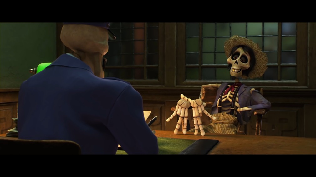 The movie begins by telling us the history of the Rivera family where Imelda Rivera (Alanna Ubach) was stuck raising little Coco as her husband walked out on them to live out their dream as a world famous musician. She didn’t let that get her down that she pulled herself up by her bootstraps and spent the rest of her life making shoes and teaching her family to make shoes; all the way to the present day where SHE may be dead and gone, but Coco is still around (Ana Ofelia Murguía) as the oldest living relative of the Rivera family and the great grandmother of Miguel (Anthony Gonzalez). Now despite Imelda more or less banning music in the Rivera household which is a tradition that has carried to this day, little Miguel can’t help but want to be a musician like his hero Ernesto de la Cruz who was a famous musician long ago and is still fondly remembered in Mexico to this day. In fact… maybe there’s a connection between the guy who walked out on Imelda to become a famous musician, and this famous musician that Miguel is obsessed with right now!? Maybe he’s the long lost great great grandfather and the only one in his family that would understand his love of music!? Well Miguel is certainly convinced of this after finding some photographic evidence and decides to… rob Ernesto de la Cruz’s grave so he can use his guitar to win a talent competition? Okay… seems a bit extreme, but whatever! THE KID’S GOTTA PLAY!! Too bad that robbing a grave gets you a one way ticket to the afterlife as Miguel finds himself more or less a ghost to those in the living world and eventually finds himself in the city of the dead where all the people who died are now skeletons; including Imelda Rivera and the rest of his extended family! Will Miguel find a way to get back home before his brief vacation among the dead turns into a permanent residency? What will he be able to learn about himself and his family during his treat; including the elusive Ernesto de la Cruz who may be able to help Miguel live out his dreams as a musician? How the heck is a human supposed to survive in a city of the dead anyway!? It’s not like any of the residents have lungs, so do they even have oxygen there!?