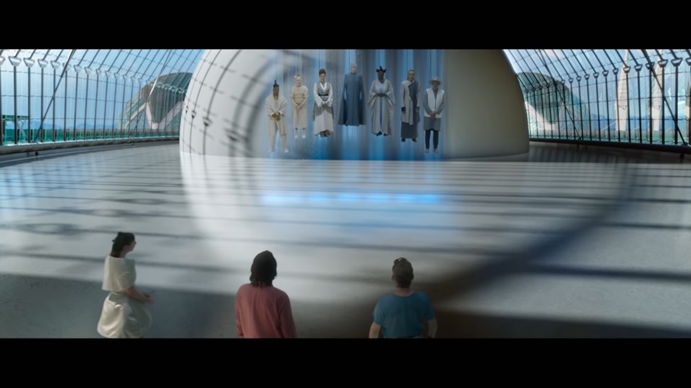 If you’re a Bill & Ted fan, then I can’t imagine that you wouldn’t really get a kick out of this movie as Reeves and Winter slide back into these characters with such ease while also infusing them with a genuine sense of age and experience. They are no less the silly goofballs they were in the previous films, but the weight of life, marriage, and fatherhood, not to mention a destiny they’re stuck with they just can’t seem to fulfil, has worn them down quite a bit when all they want to do is what’s best for everyone. I don’t get the sense watching this that either one of them REALLY wants to be rich and famous for the sake of it; rather they want to do right by the world and can’t do much more than march forward until they stumble upon whatever it is that they’re supposed to do. That said, what is easily the most brilliant idea they had for this movie is that they are in fact their own worst enemies, and the time travel shenanigans that have them seeing their future selves are almost profound in their wicked and sobering depictions of a future where their selfishness and fatigue did eventually get the better of them. Once again, Reeves and Winter shine as they have a lot of fun imagining the ways in which these characters’ lives could go terribly wrong and playing it up with gusto whenever these versions show up. Aside from that, the two other major plot threads involve a conflict going on in the future (we’ll get to that soon enough), and their kids Billie & Thea essentially doing their own version of Excellent Adventure while Bill & Ted are going on their second Bogus Journey. The story with the kids is far too cramped to have the impact of that original film, but there’s definitely a lot of fun to be had watching them meet musicians throughout history and watching these two play off each other. This is actually one of the few films where I’d more than willing have them tack on another half hour just so everything really gets it time to shine and all the characters are as fleshed out as you’d want them to be, but if you’re here for Bill & Ted you definitely get what you wanted out of them.