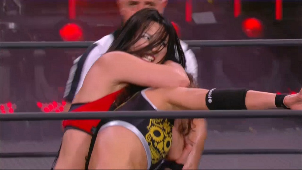 Stuff happens with them going back and forth for a while, but the turning point is when Shida takes a Death Valley Driver from Rosa on the apron. Rosa goes for the pin put only gets a two count so she goes right into a right arm submission to try and tap Shida out if she’s not going to be pinned. Shida manages to get the rope however so Rosa climbs to the top rope to try and big move there, but Shida runs up the rope and gives her a Superplex. If that wasn’t enough, Shida sends Rosa to the ram and lands a middle rope Meteora to the outside which was definitely the highlight of the match. Both of them are bruised and exhausted, but most of all their enraged so they start trading big moves back and forth like nobody’s business, and Thunder Rosa even manages to kick out at one after receiving a Falcon Arrow. Rosa lands a Backstabber and Shida and Shida lands a Backbreaker on her, but their spines remain strong and neither one of them are able to get the pin. What finally brings the match to an end is a running knee from Shida who finally gets the pin on Thunder Rosa and retains the title. It was fine, but I was mostly nonplussed watching it. If they want me to care about these matches, we really need more promos from Shida and in ring angles to build off of; not just one off opponents whenever AEW can find one.