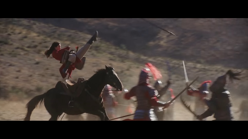 The best parts of the movie though, and what has kept me from dismissing the movie outright, are the action set pieces which are fun to watch; especially the ones involving our primary antagonists. The stunt work is solid, the cinematography is creatively executed, and it’s full of bright colors that really makes everything pop in a way that you don’t often get with a lot of CG heavy modern blockbusters. Mulan being rewritten as something close to a CHOSEN ONE (considering how strong she is right out of the gate) doesn’t help the narrative as her being such a natural at combat kind of undercuts the whole “EQUALITY” narrative; more or less saying that the only way the system will overlook your bold defiance if you overachieve to a startling degree. Still, it may have had to be something of a necessary choice considering how much more the action plays into this story as it gives us an excuse for her to be a part of the well-choreographed action sequences, and frankly the narrative has enough problems that sacrificing the action to slightly fix one of them isn’t a trade off I’d make for the is movie. Obviously there are better movies out there when it comes to this kind of action (and the wire work is a bit TOO obvious considering how high the budget is), but it’s definitely the one area of the film that genuinely improves upon the original.