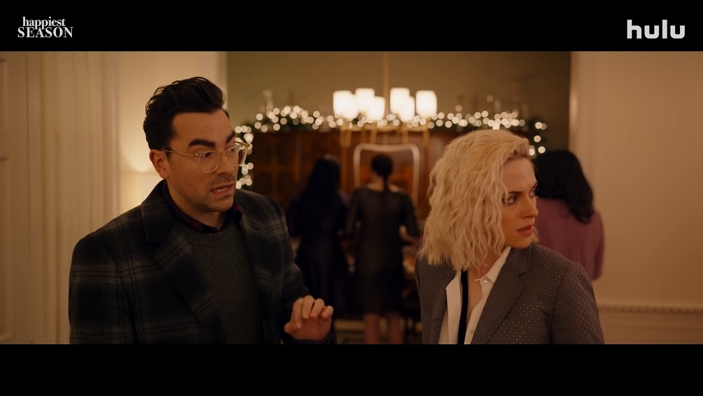 None of the cutesy Christmas stuff and predictable family arguments are what bring this movie down though. Heck, they’re practically charming in this film that doesn’t try to pretend to be anything more than Hulu’s answer to The Christmas Prince which itself was Netflix’s answer to… well the ENTIRE Hallmark channel. The thing that soured me on this movie beyond being just simple fluff is the character of Harper and the central conflict that she brings to the movie. No matter how brave a face Kirsten Stewart tries to put on the situation, it’s hard to get over the fact that her girlfriend who must be approaching thirty hasn’t got over the fear of disapproving her parents; and yet that wouldn’t be so bad if the movie didn’t try to make us sympathize with the situation. Harper makes so many relationship 101 mistakes in this movie which paint her in an absurdly unflattering light, and while the movie tries at the end to justify it after the obligatory “big blowup” scene, it simply doesn’t pass the sniff test. Yes, coming out is hard for a lot of people, but she’s not financially dependent on her parents so she’s not risking her stability over it, she has her own life in a far off city where she IS out so she’s not risking any further discrimination or scorn from her ACTUAL community, so even if I believe that this woman has SO many issues with her family that she’s still hiding her sexuality to them, the framing of this being a difficult situation that Abbey should try to roll with feels needlessly tone oblivious; as does the overly generalized nature of her parents’ bigotry. Her father is a politician and supposedly it would be “bad” for him to have a lesbian daughter (something that is confirmed within the text of the movie), and not only does this make no sense because Conservatives LOVE to have token marginalized people they can point to excuse their bigotry (I have a Black friend and all that), it feels so backwards that the SECRET is the primary conflict and not the fact that her family is like this! Abby literally deserves NONE of the nonsense that is being put upon her in this movie, and I don’t think I’m the only one who was hoping she’d leave Harper for Aubrey Plaza’s character who seems to actually have the emotional intelligence to deal with a situation like this.