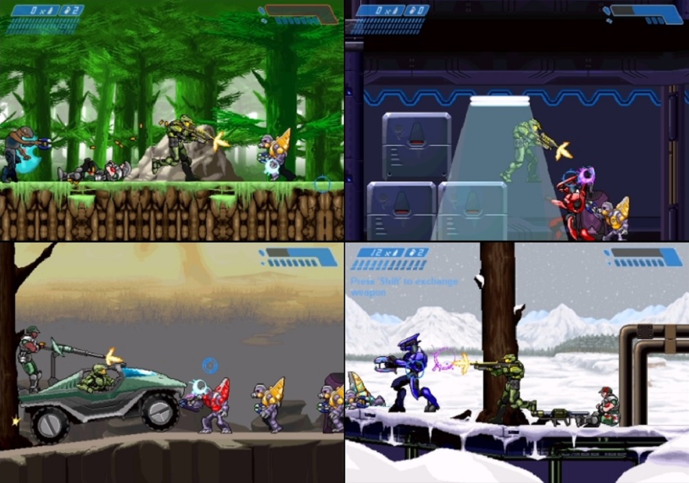 There really aren’t that many fan games of Halo, are there? Compared to franchise like Mario and Sonic which have a near infinite amount of flash games, rom hacks, and brilliantly realized experiences, you’d think that something that hit as hard as it did for the sixth gaming generation would have engendered a bit more interest, but perhaps it being a first person shooter and relying more heavily on big budget 3D environments has made it hard for fans to recreate the experience with their own twist on it. That’s probably why this is one of the only ones to have gotten a released as it’s a straightforward side-scroller not trying to recreate the majesty of the actual games. Does it work? Well… I’ll give a solid A for effort but I didn’t particularly enjoy my time with Halo Zero. It’s very patchwork in where it decided to polish things up which are primarily the animations and audio; both of which are darn good. Apparently the sprites are from another studio that was working on their own fan game that never came out, but the look good for the time the game was made and faithfully recreate the look and feel of the franchise; albeit in a reduced form. Sadly the gameplay is lacking significantly as the most effective strategy is to either jump over all the enemies or stand just far enough back that they are off screen for your shields to recharge; neither of which are particularly compelling. The two Warthog segments in particular are on total autopilot where you can gun it for ten seconds, stop, shoot a few guys, sit there for the shields to recharge, and then gun it for another ten seconds to finish the stage, and there’s just no depth or variation to the formula to make it feel like more than a conveyor belt. There’s one or two stages that toy with verticality and having you go up and down certain areas, but it’s still effectively a straight line with little strategy beyond being patience and recharging your shields. Seeing as it’s a fan game I’m going to leave it there and say that it’s an entertaining little distraction and a fun time capsule for a few minutes, but it only takes about twenty minutes to beat and thankfully didn’t go a minute longer. The studio is still around in some capacity as they’ve since made two mobile games with similar mechanics, but what’s weird is that they’re still using the Halo aesthetic despite these mobile games not being officially licensed. Worse yet, they JUST released one of them on steam at the end of 2020 with names, designs, and even MUSIC straight up lifted from the Halo games.