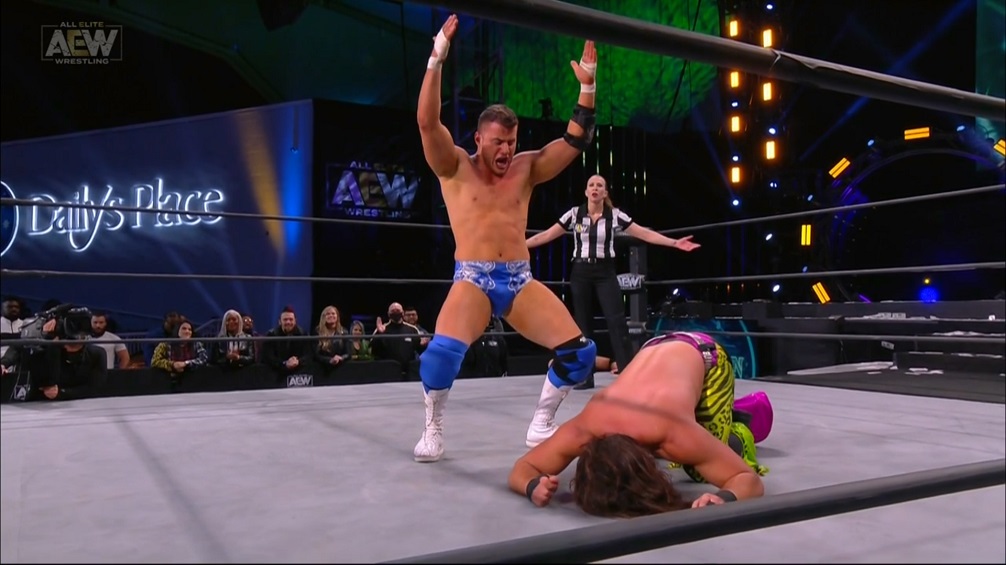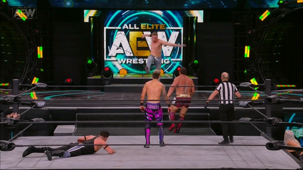 I’m pretty sure neither of these two have won a match on Dynamite or on a PPV. For all I know they’ve had some success on Dark, but considering the guy HAS a name in the wrestling world, you’d think they’d give Matt a FEW wins here and there on the big stage! The two certainly look good as they take Ten apart with a series of kicks that he just can’t block, but they don’t toss him out and there are no eliminations.