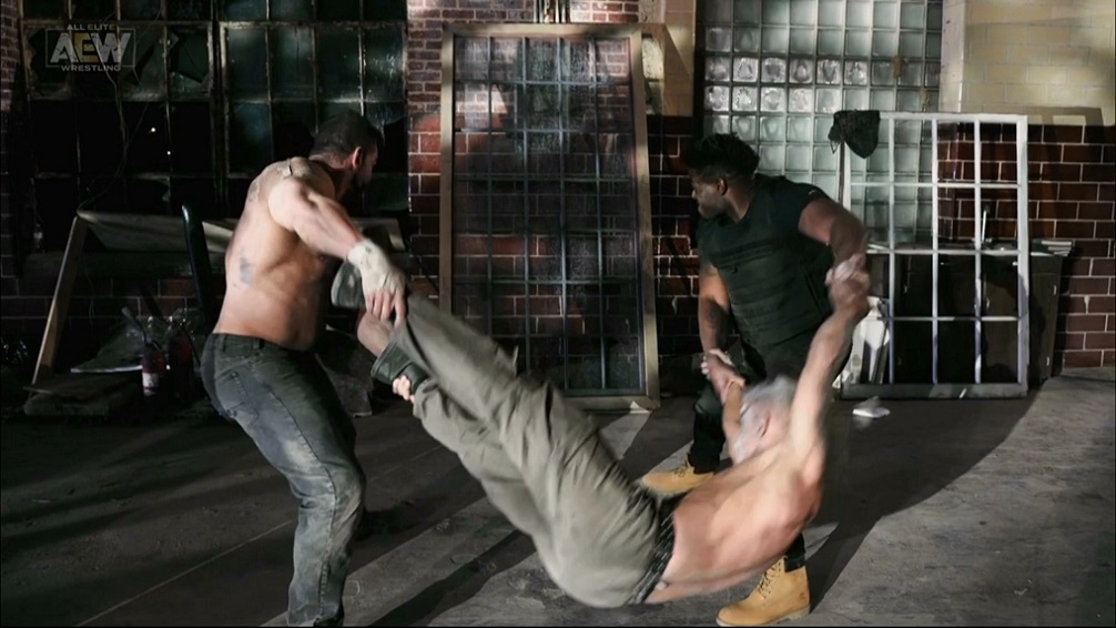 I don’t’ think they’ve had a match on Dynamite before, but I have at least seen them as lumberjacks in some match. They’re big guys in something of a Heavy Machinery mold, but I didn’t really get much of a feel for them in this match beyond that. Stu Grayson tries to show off by lifting Boulder, but all he ends up doing is opening himself up for Bronson to attack and for the two to then eliminate him.