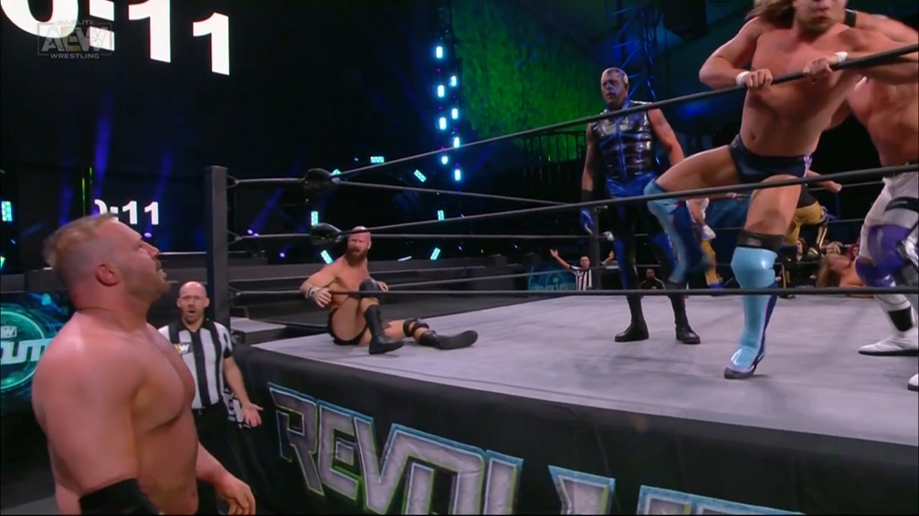 Okay, is it just me or is Christopher Daniels RIPPED? I guess he’s taking that whole NEXT TIME WE LOSE WE BREAK UP thing seriously, but whatever the reason is the guy is in his best shape since coming to AEW! Kazarian and Daniels attack Private Party for a bit, but they don’t get any eliminations here. Instead, Bear Country manages to eliminate Luchasaurus by double teaming him and tossing him over the ropes, but THEN The Balde comes out of nowhere and somehow manages to eliminate BOTH members of Bear Country at the same time! That’s gotta be one of the biggest spots The Butcher has ever had, right?