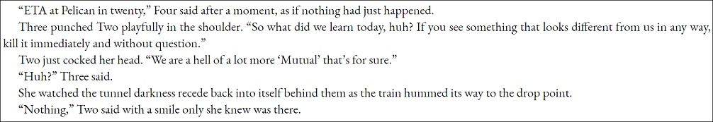 It ends on a bittersweet note which I won’t spoil here, but even with that I found myself enjoying this short trip through the eyes of the last man standing quite enjoyable. That said, can at least ONE of these stories lighten things up a bit!?