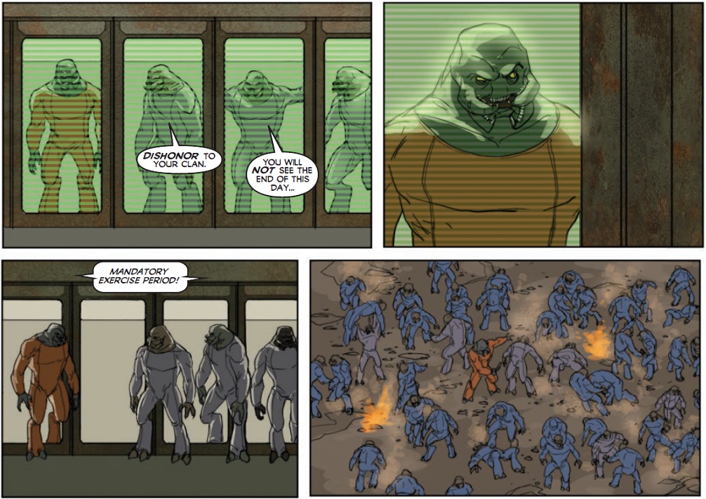 From there we jump ahead quite a few years after where Earth is AT BEST in a stalemate with The Covenant and get into the backstories of the three human characters from the game. Forge and Cutter are already on The Spirit of Fire which is mostly on hand to serve as a resupply vessel but gets roped into open combat like every other ship in the fleet, and Anders is brought on board to study The Covenant who are on Harvest and are still looking for something so she needs to figure out what it is. The comic even go so far as to throw a few pages to the backstory of the Arbiter that was in the game as Anders somehow manages to figure it out based on her research. I’m not exactly sure how she was able to pull that off, but I’m always here for stories about the Elites; especially when it involves a freaking PRISON riot!