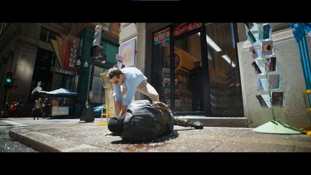 Now on its own merits, regardless of what ambitions it has or movies that it reminded me of, it’s pretty solid. The action itself isn’t gonna give the Fast movies or the MCU a run for its money, but it gets the job done and is held up by the solid performance by Ryan Renolds. You don’t make a movie like this without a star to carry it, and while it’s far from his BEST work, you can’t deny that Reynolds brings a lot to the table whenever he shows up in something and he is one of the reasons this film elevates itself ever so slightly above the standard Blockbuster fare. It could have just been another Ready Player One where the spectacle and references overtake any semblance of a story but Reynolds finds the humanity in his character that manages to peak out underneath the goofy caricature he plays throughout the movie. Guy as a happy go lucky oblivious fool constantly surprised by the world around him can come off as obnoxious when he’s in the middle of something and still can’t grasp the gravity of his situation, but his longing and sadness become evident as the movie goes along and his ambition to change all that helps to make him endearing. And again, pawning Gamer Noobs is always fun to watch!