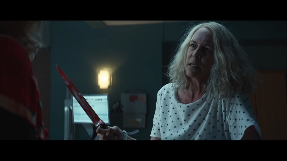 The question I keep coming back to is why THIS particular horror sequel bothers me so much more than a lot of the others out there. I guess it could be the expectations set by the last film being as good as it was, but we’ve seen drop-offs in quality like this before, and the fact is that I was expecting something worse simply because of how blatantly they had sequel baited at the end of the last one. I think it’s something a bit deeper; not just that this is worse than the last one, but the ways that it just fails to find ANYTHING worthwhile to do despite all the same people being involved. Same actors, same writers, same director, continuing right where the last movie left off… and yet it just doesn’t work! It’s almost impressive how much this fails to capture even a fraction of the 2018 film’s magic, but let’s not get bogged down in generalities and get to the nitty-gritty of the plot. Where the last movie was about a small group of people within the town scrambling to find and deal with Michael Myers, this movie expands its scope to include more or less the whole town that is now after Michael and is terrified of what he could do or discovering what he’s already done. There are a lot of great ideas to work with here and the first act seems to be pointing us in that direction with Tommy Doyle leading the charge and organizing groups to search for him. It’s too bad that the movie never delivers on this promise and instead just uses it as an excuse to pad out the body count. I’ve been trying to focus less on singling out contrivances in my reviews to justify my negative reactions to a movie, but there’s just no getting around the fact that none of these vigilantes are using their freaking cell phones. It’s not just goofy horror movie logic that I would accept in a movie that I was enjoying more; it comes off as pulling back on what the movie had already promised us. No interesting angles with regards to groups searching for the killer (I could picture a Searching style found footage movie running with this premise), it’s just the same slasher movie we’ve gotten a hundred times before. That disappointment, that lack of follow-through on what SEEMS to have been a sense of ambition, is what got me to really turn on this movie; and yet even then, there are still worse things about this movie that we still need to get to.